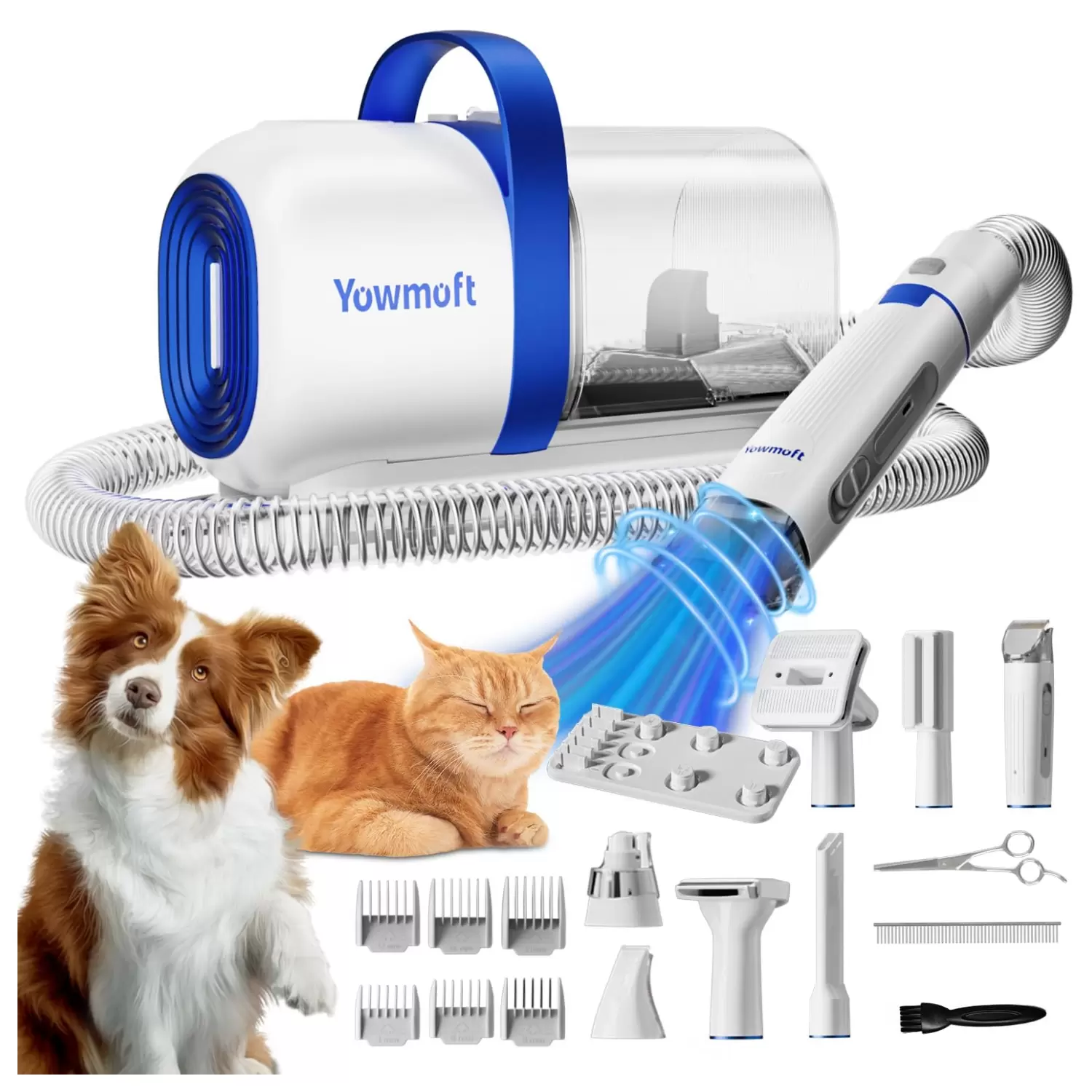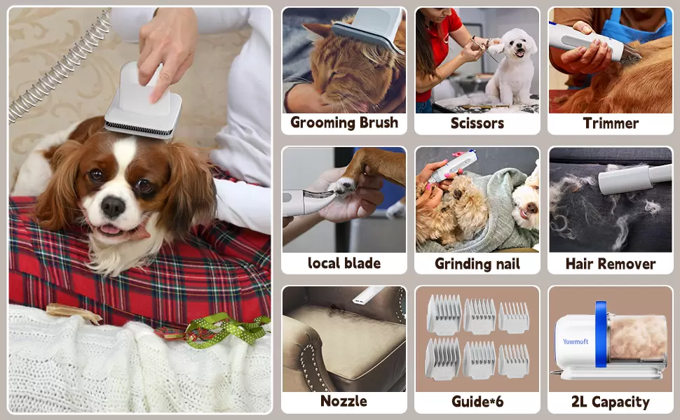 Aspiradora de pelo de perro con 15 herramientas de aseo para mascotas: el kit de aseo para mascotas Yowmoft generalmente se refiere a un conjunto completo diseñado para atender específicamente a los dueños de mascotas que quieren acicalar a sus perros y limpiar el pelo de las mascotas de manera efectiva. No solo elimina el pelo suelto, hace que el pelo de las mascotas sea brillante y suave, sino que también se puede utilizar en la vida diaria.