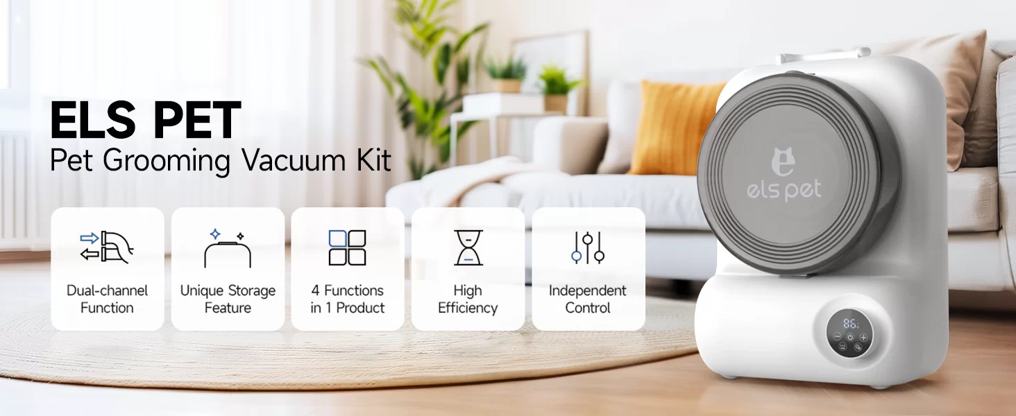 Aseo profesional en casa. Este kit de aspiradora y secadora es ideal para dueños de mascotas. Potente y silencioso, hace el aseo más fácil que nunca.