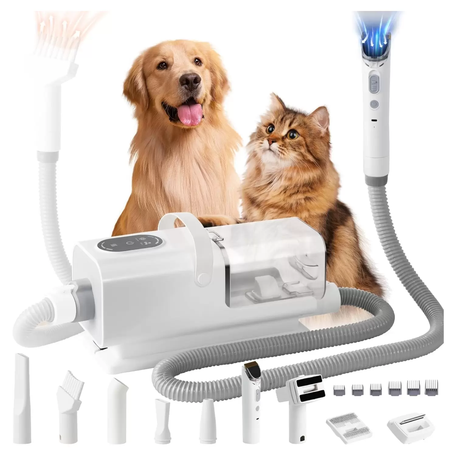 Aspiradora y Secadora de Pelo 8 en 1 para Perros y Gatos – Silenciosa y con Recipiente de 2.2 L