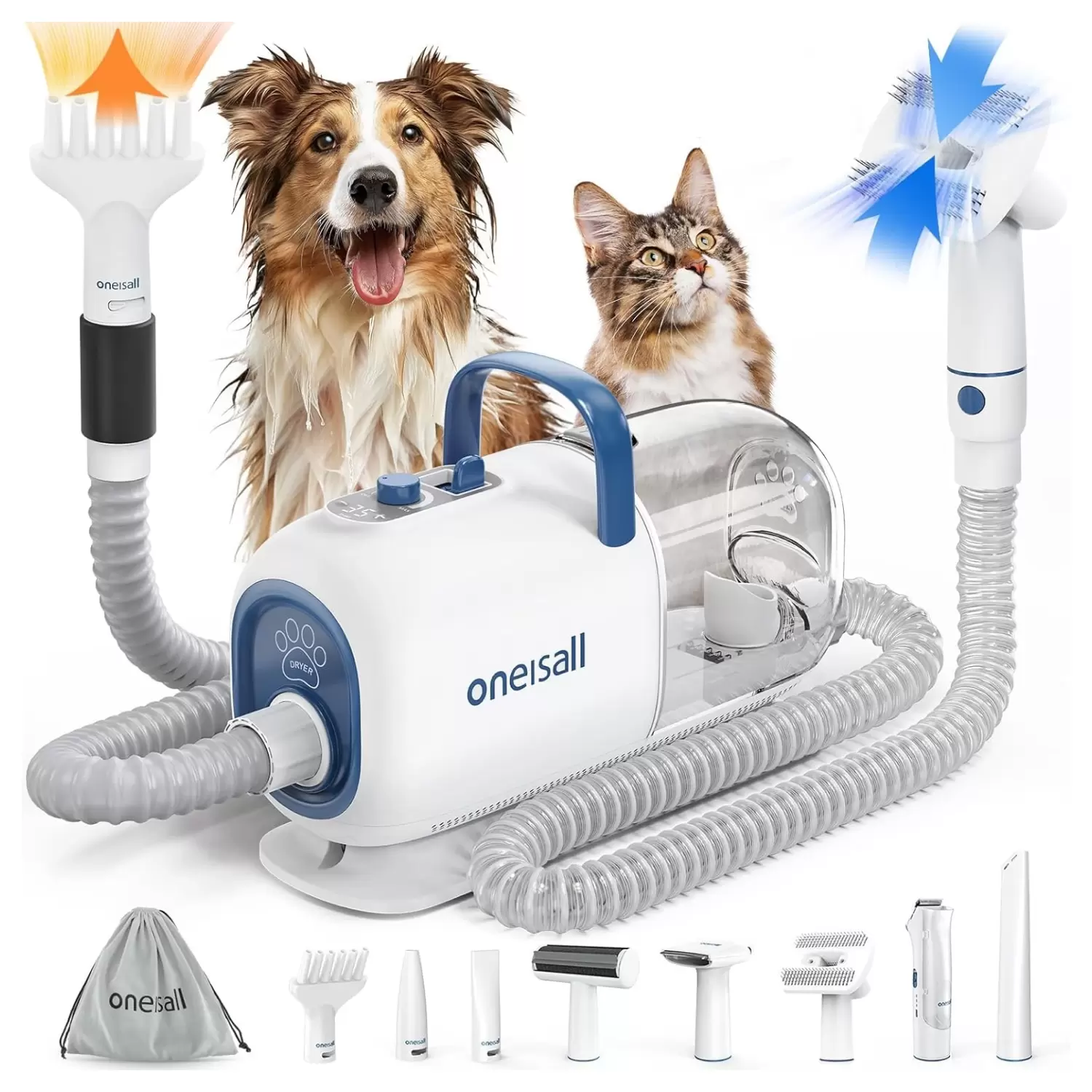 Cepilla el pelo de tu mascota todos los, Chupa el pelo del cobertizo y limpia la casa, Incluye una bolsa de almacenamiento para almacenar accesorios, Recorta el pelo de tu perro, Seque los abrigos de las mascotas, los pies cuando sea necesario