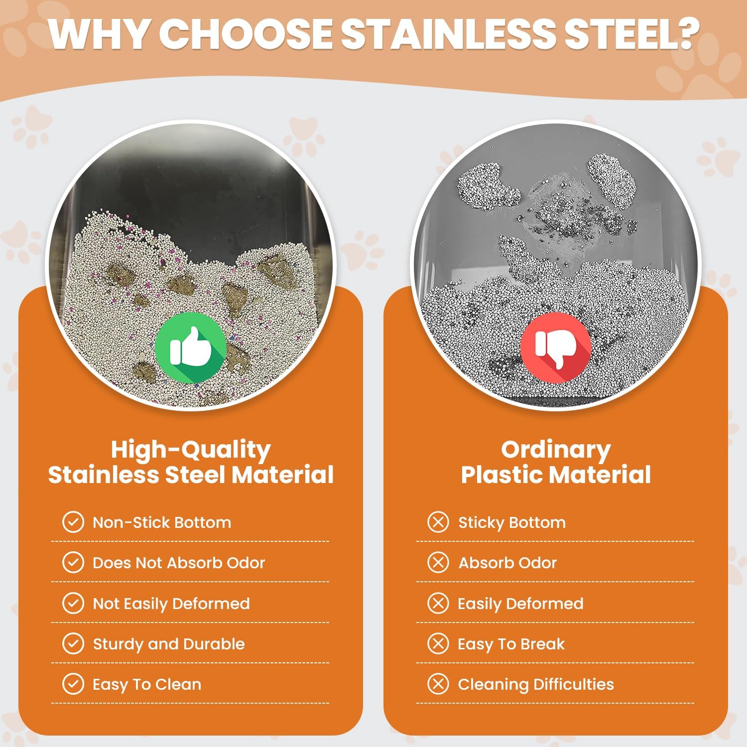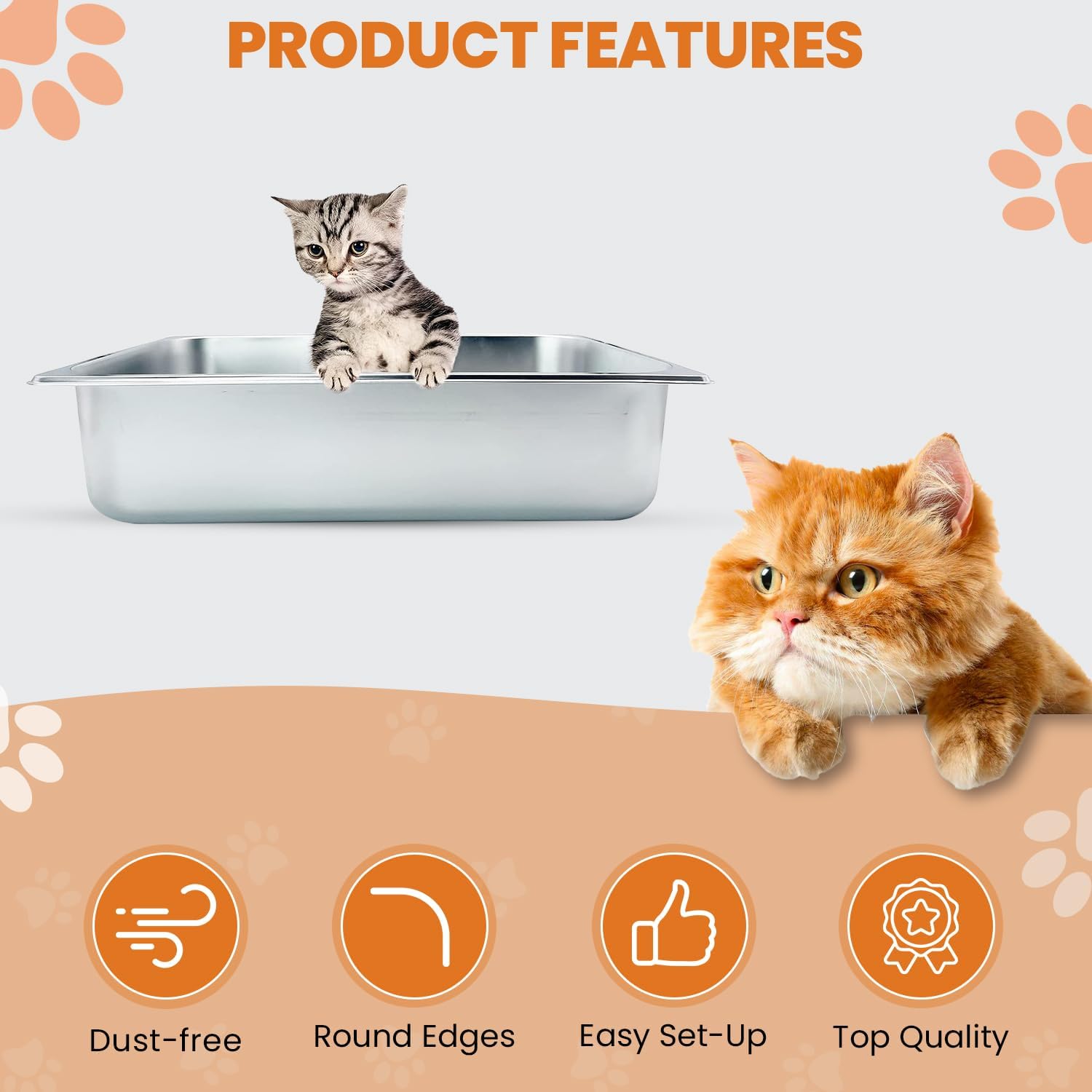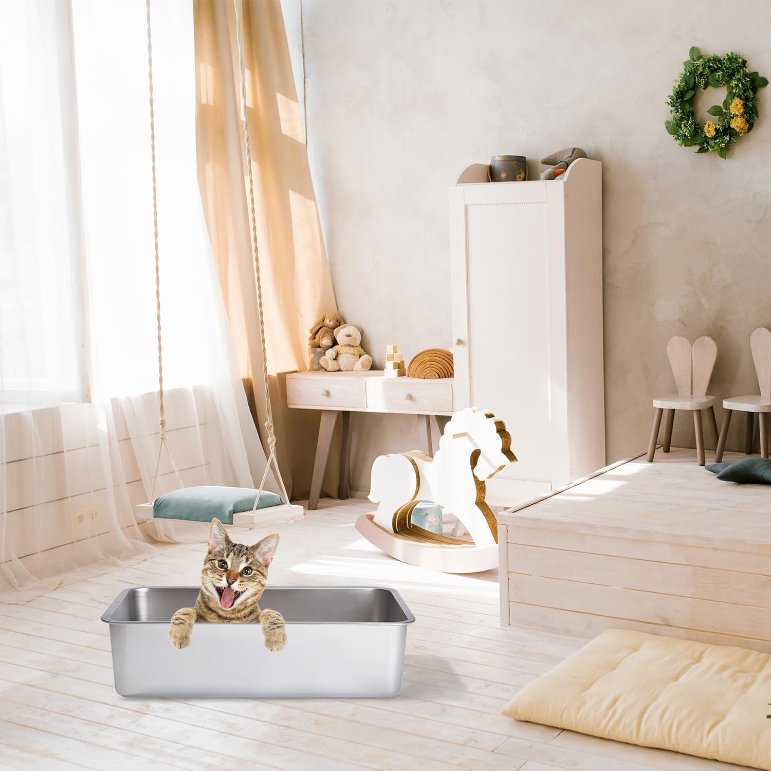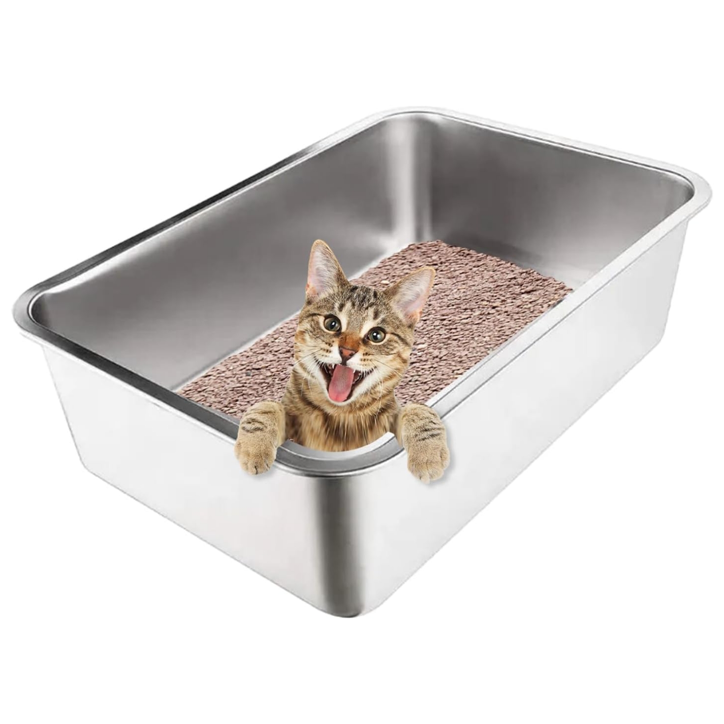 Caja de arena de acero inoxidable (17.5 x 13.5 x 6 pulgadas): esta caja de arena de metal para gatos está hecha de acero inoxidable de alta calidad, asegurando que nunca absorbe olores, manchas u óxido, proporcionando una solución higiénica para tus mascotas.