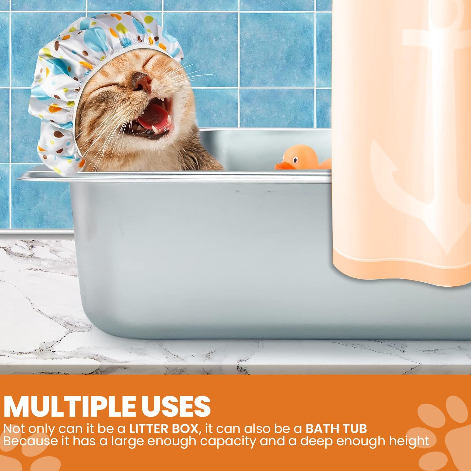 Lados altos para menos desorden: la caja de arena para gatos de acero inoxidable cuenta con lados altos para contener la dispersión de arena, por lo que es ideal para gatos y conejos que cavan o patean. Mantendrá tu hogar limpio.