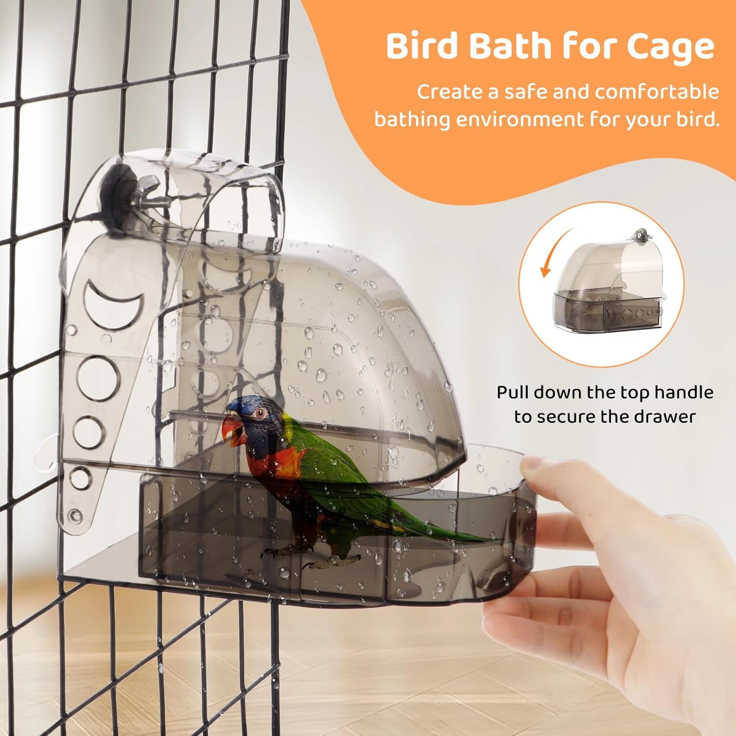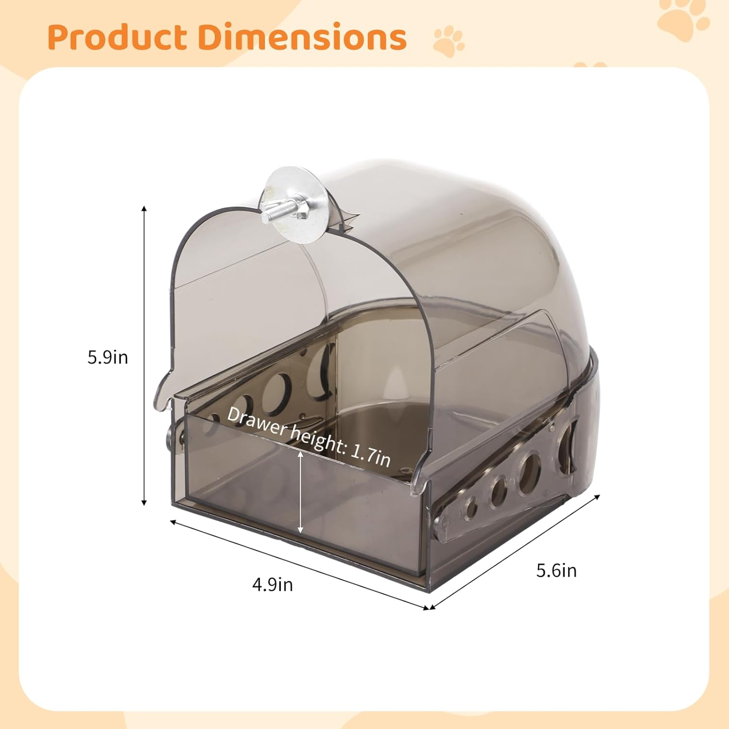 Amplio baño para pájaros: mide 4.9 x 5.6 x 5.9 pulgadas con una altura de cajón de 1.7 pulgadas, nuestro baño para pájaros para jaula ofrece un espacio amplio para que tu pájaro disfrute de un baño refrescante. El baño regular puede promover la salud de las aves limpiando la suciedad e hidratando su piel mientras les ayuda a refrescarse para regular la temperatura corporal.