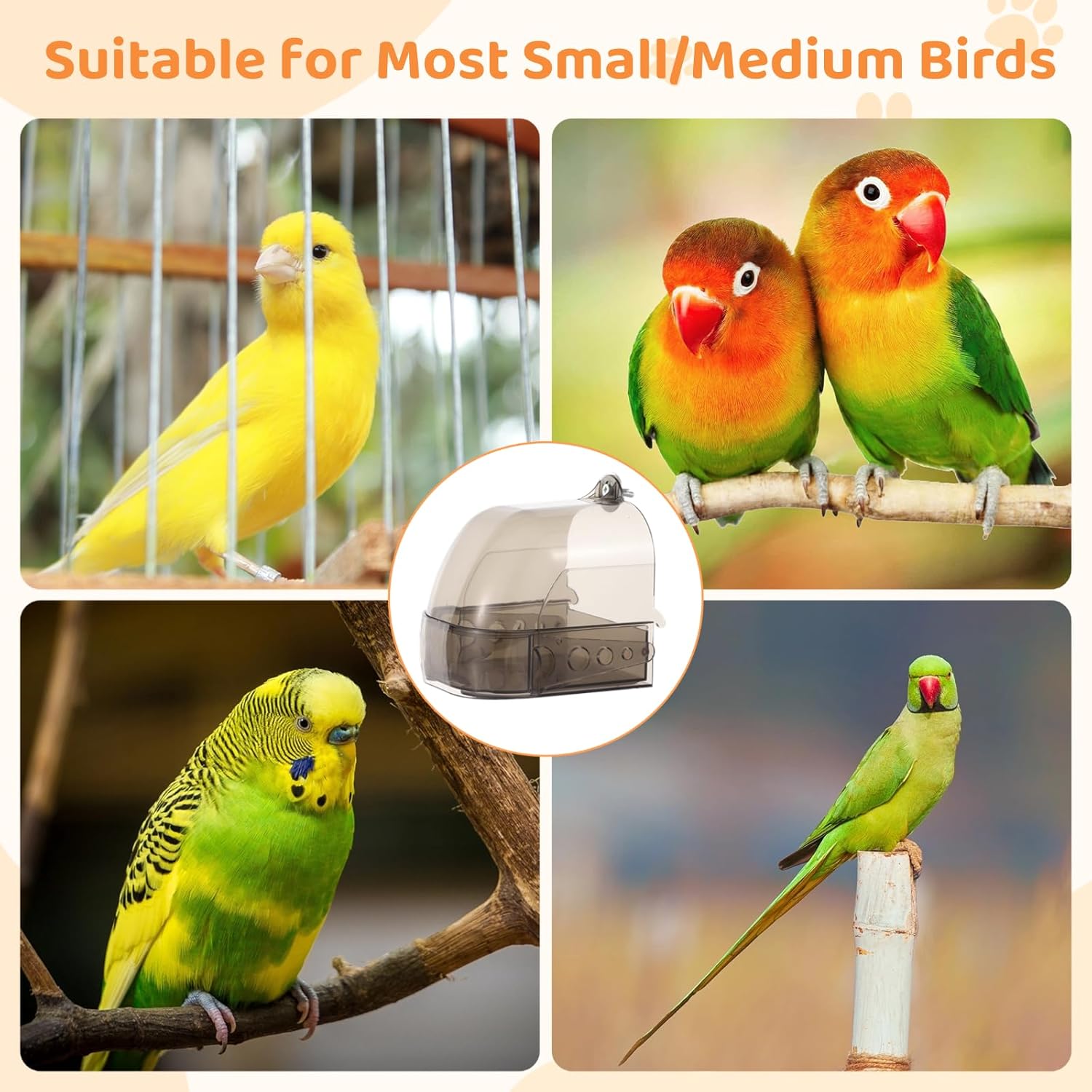 Amplias aplicaciones Este baño de jaula colgante es adecuado para la mayoría de aves pequeñas a medianas como canarios, periquitos, tortolitos, cacatúas, periquitos, etc. Exquisitamente elaborado, crea un ambiente de baño seguro y cómodo para tu ave y también funciona como comedero, nido para dormir o caja de reproducción.