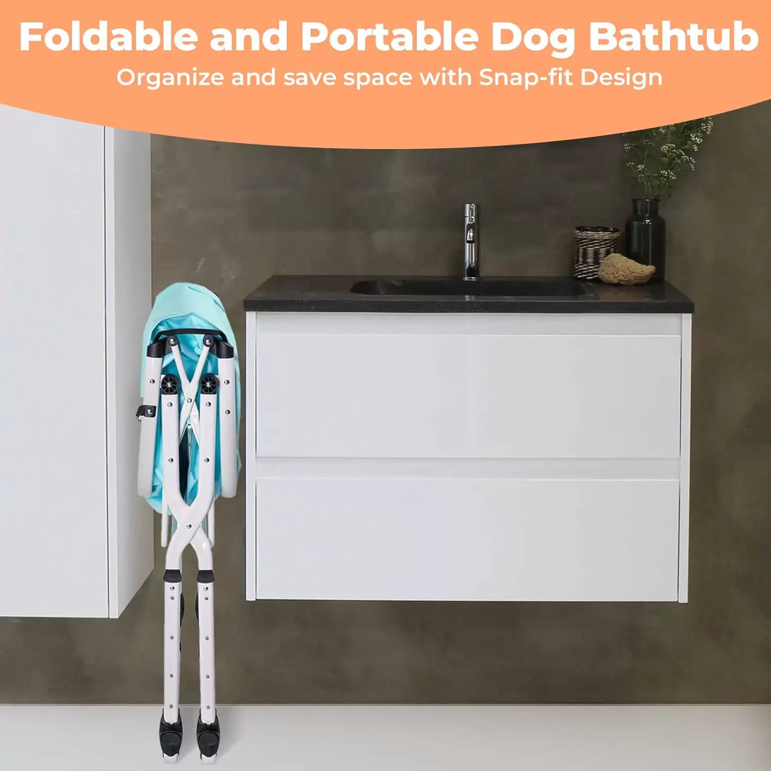 Ahorro de espacio y portátil: dobla la estación de lavado de perros para el hogar en segundos con una mano. La bañera portátil para perros compacta de 7 pulgadas de ancho la hace ideal para espacios pequeños. Guárdalo en armarios, garajes o incluso llévalo para viajar
