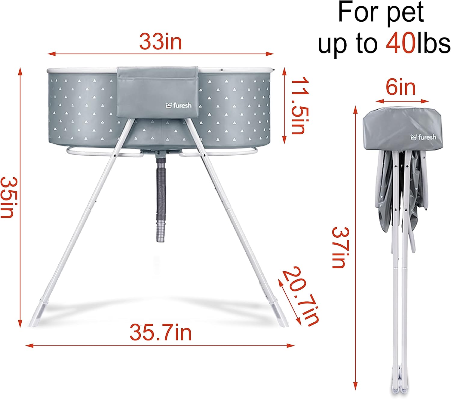 Diseño ligero y duradero: el lavabo está hecho de PVC de grado marino, que es resistente, fácil de limpiar y resistente al desgaste de patas y garras. El marco está hecho de tubo de aluminio inoxidable y pesa menos de 11 libras en total, pero soporta más de 130 libras (incluyendo agua) y permanece estable y seguro durante el baño y el aseo. Dimensiones: 35.7 pulgadas de largo x 20.7 pulgadas de ancho x 35 pulgadas de alto (desplegado)