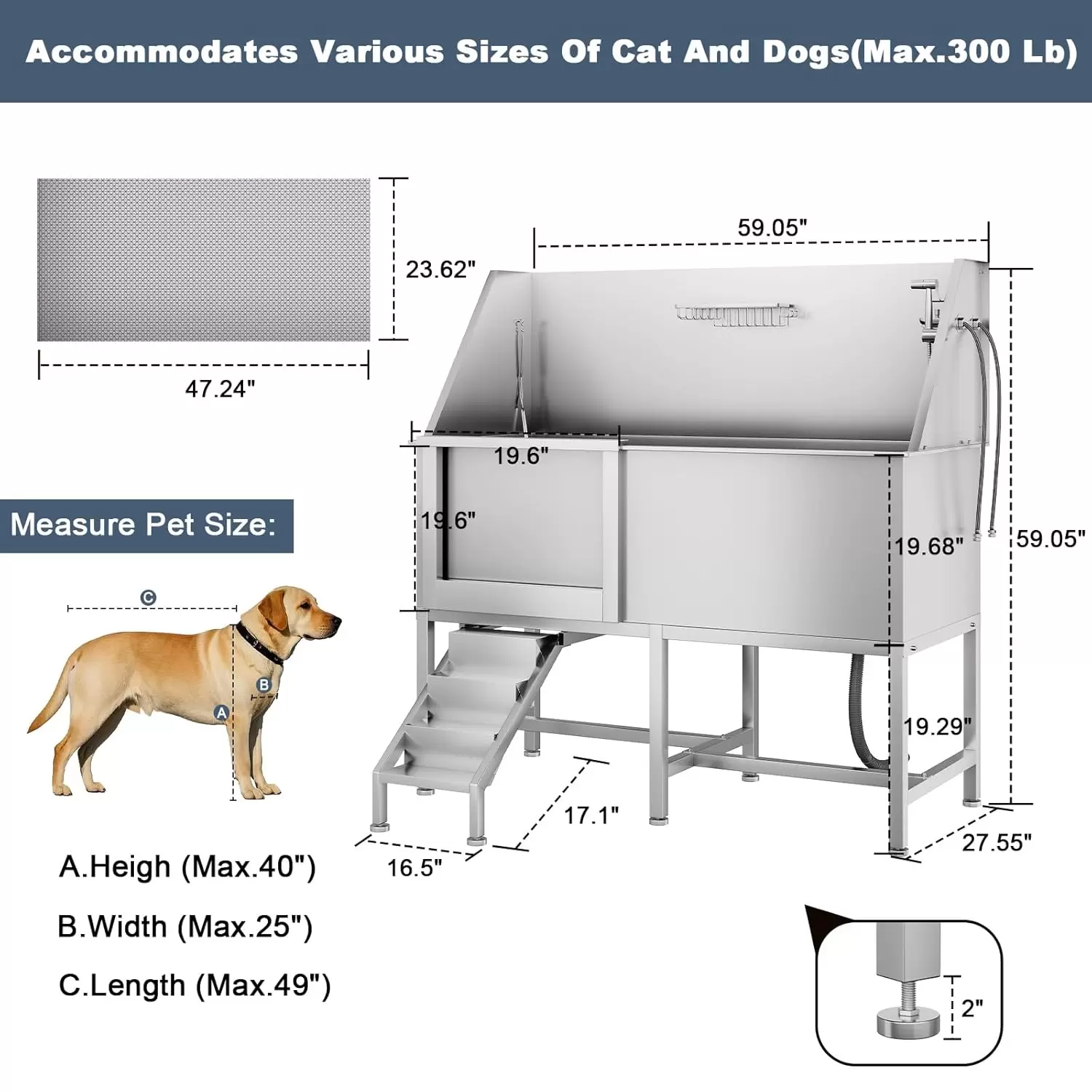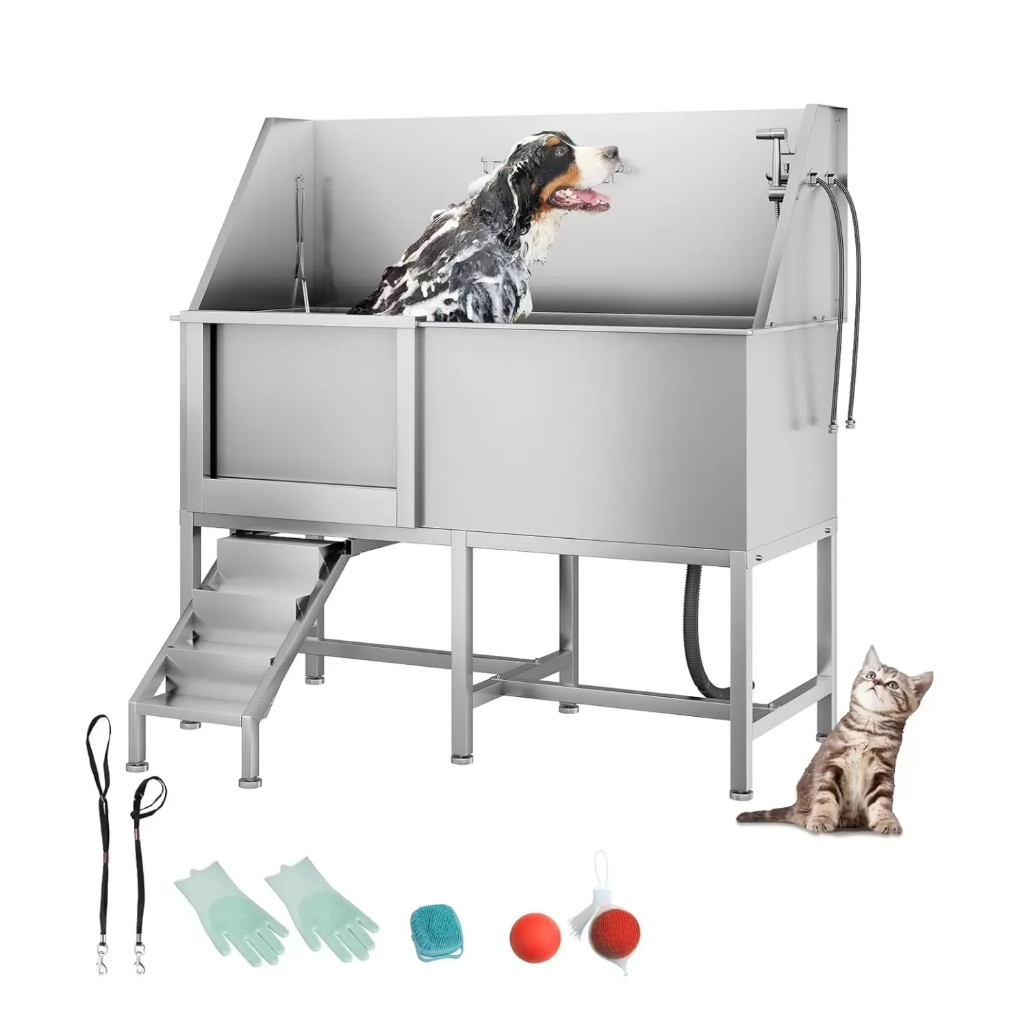 Bañera de acero inoxidable duradera: la bañera para perros OUTWIND está hecha de acero inoxidable de alta calidad, ofreciendo una durabilidad excepcional con soldadura sin costuras. Esta robusta construcción garantiza que la bañera pueda soportar el uso frecuente tanto en entornos domésticos como profesionales sin preocuparse por el óxido o las fugas. Una opción confiable para las necesidades de baño de tu perro.