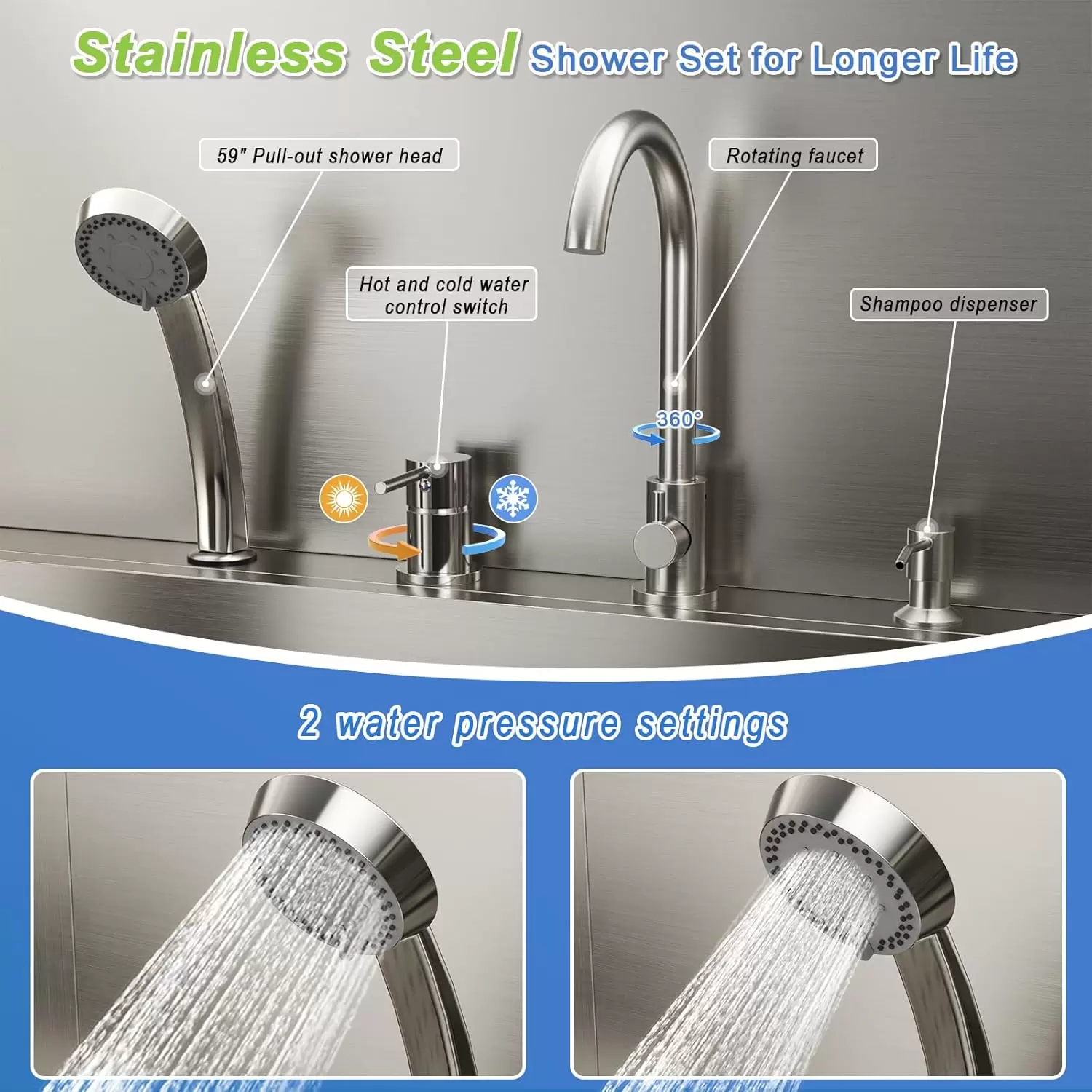 Construcción duradera de acero inoxidable 304 construida para durar: hecha de acero inoxidable 304 resistente al óxido, incluyendo la bañera, la plataforma y el drenaje. Diseñado para ambientes húmedos y uso frecuente. Fácil de limpiar y resistente a arañazos y corrosión