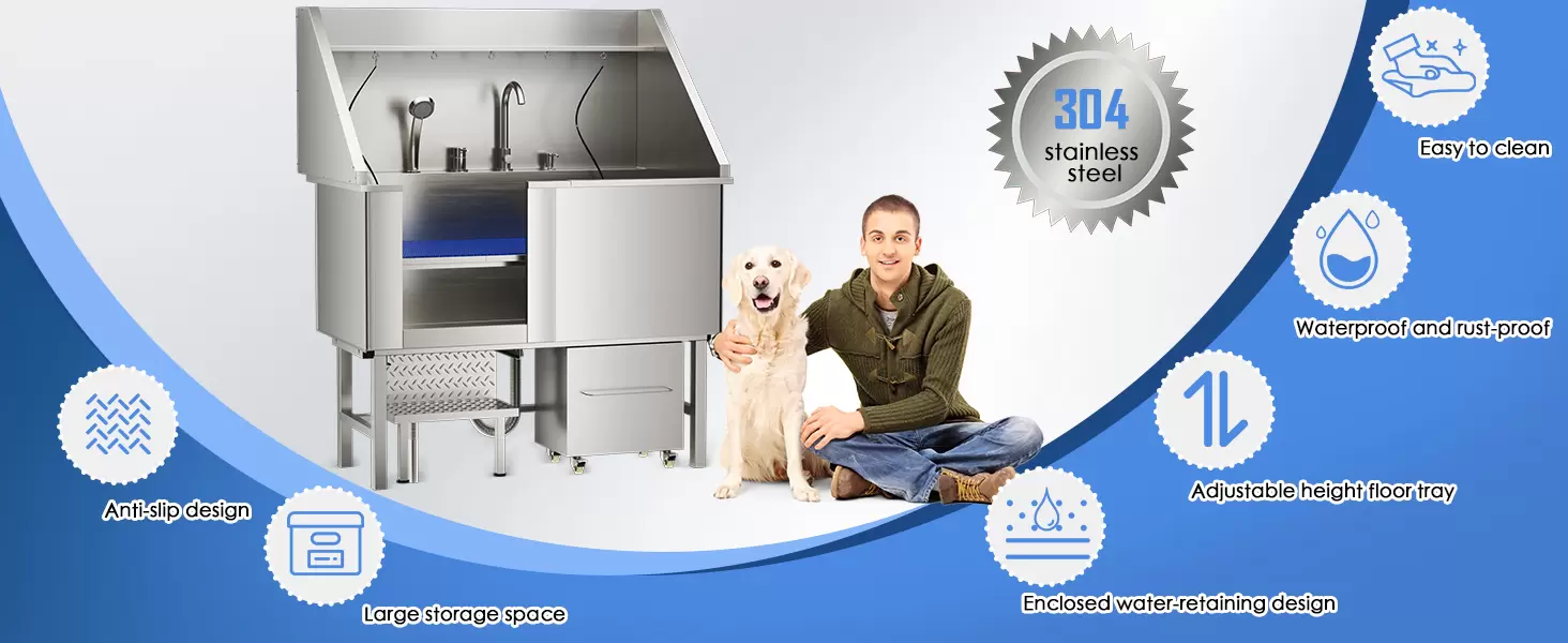 Estación de lavado de perros perfecta para uso doméstico y comercial: esta bañera de acero inoxidable de 50 pulgadas está diseñada para mascotas grandes y medianas. Ideal para salones de mascotas, estudios de aseo y usuarios domésticos serios. El espacioso interior se adapta cómodamente a razas pesadas como golden retrievers y huskies