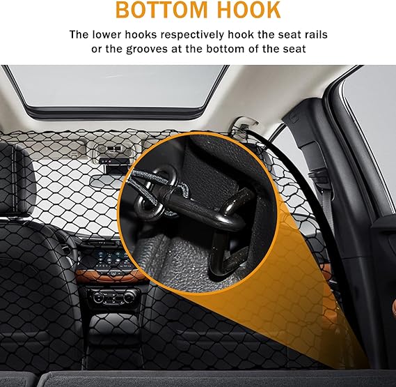 Ventilación: La estructura de malla está diseñada para penetrar en la malla. Las garras de la mascota no serán atrapadas y las mascotas no podrán entrar en el asiento delantero, la barrera del SUV del perro no afectará la circulación del aire y la barrera de la mascota reduce la ansiedad de las mascotas. Las redes de barrera para perros son más adecuadas durante el viaje que las jaulas para perros y los cinturones de seguridad para perros.