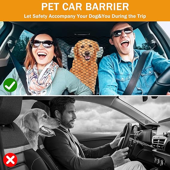 Protección de seguridad: la barrera de red de accesorios de viaje para perros evita que las mascotas entren en el asiento delantero durante la conducción, dificulta la conducción, barrera de automóvil para perros Q-DDOIT SUV red para mascotas, barrera para perros protege la seguridad de conducción y viajes más seguros, artículos esenciales para acampar para perros.
