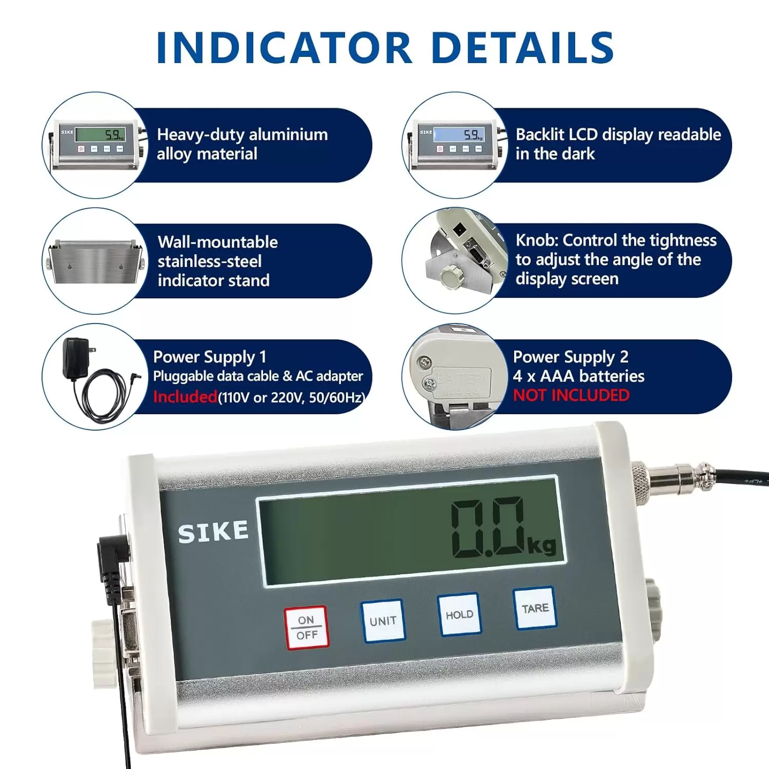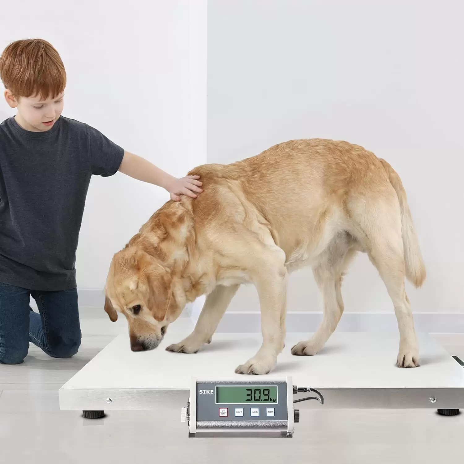 Función de sujeción y tara: la báscula grande para perros SIKE tiene función de sujeción, presiona “HOLD” y retira el objeto, el peso mostrado en la pantalla se mantendrá durante 120 segundos, lo que te ayuda a tomar medidas precisas y garantizar lecturas precisas. Función de tara para obtener el peso neto que podría medir con precisión ingredientes o productos a granel