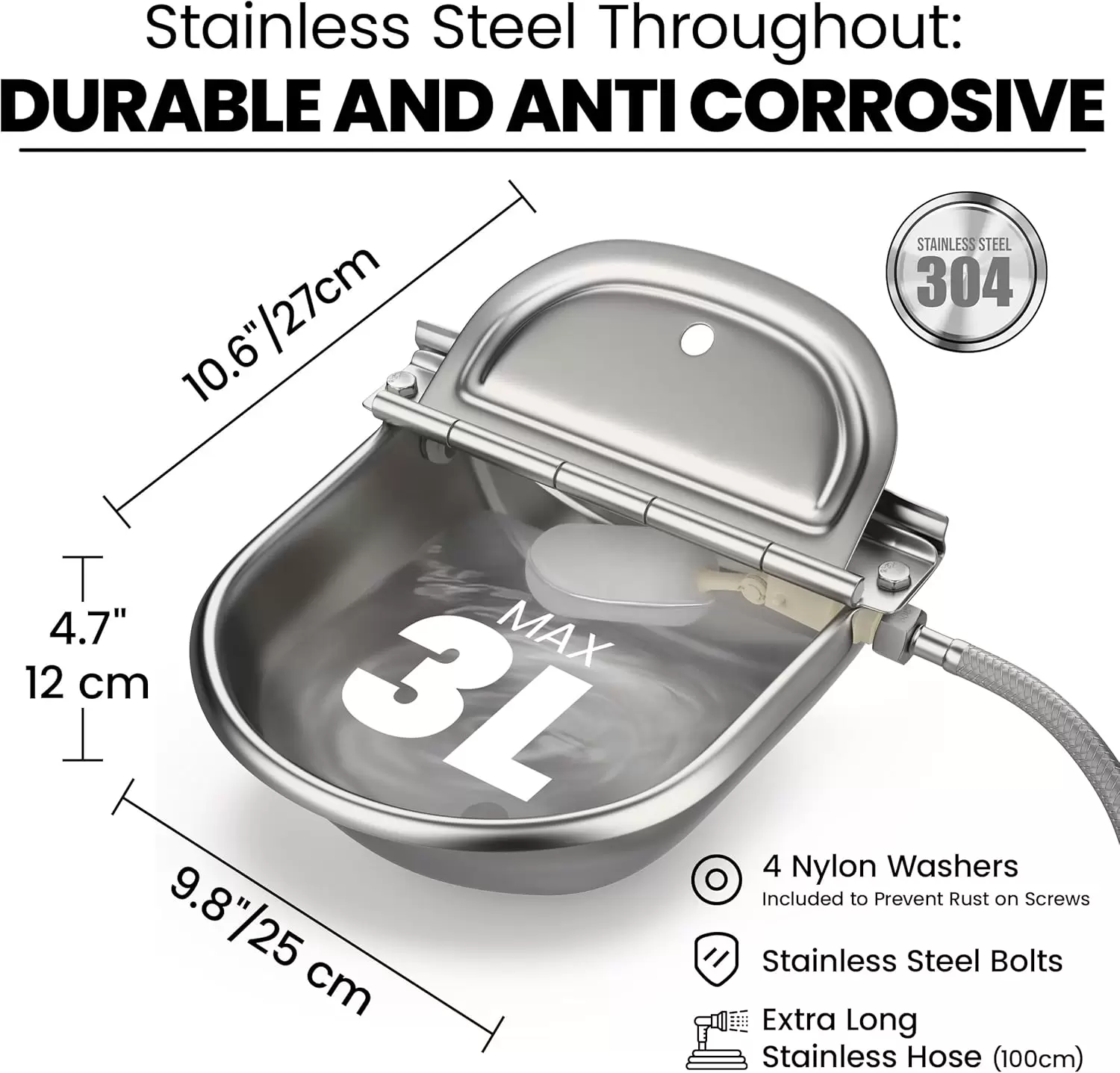 Bebedero Automatico Conexion Manguera Jardin 3 L – Acero Inoxidable Perros y Ganado con Desague