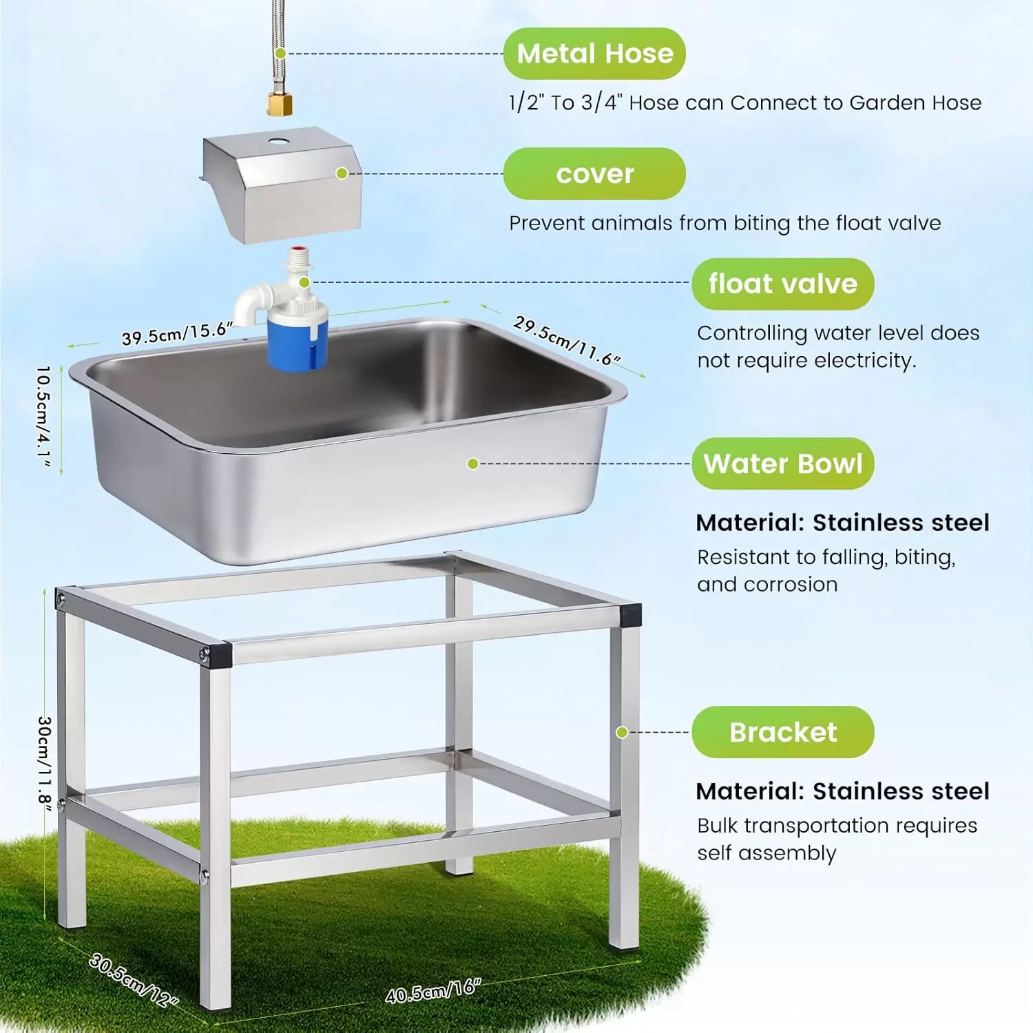 Dos formas de uso: colócalo en el estante para perros grandes, retira el estante para perros pequeños. Dispensador automático de agua para perros con válvula de flotador adecuado para ganado, caballo, perro, cabra, cerdo, pollo, animales