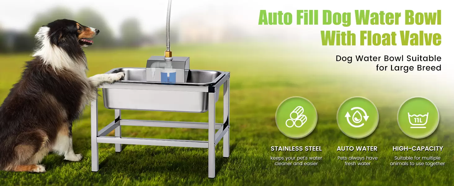 Cuenco de agua autolenado para perros: dispensador de agua para perros al aire libre con válvula de flotador puede llenar agua automáticamente, este sistema mantiene un nivel de agua constante, asegurando que los perros siempre tengan agua limpia