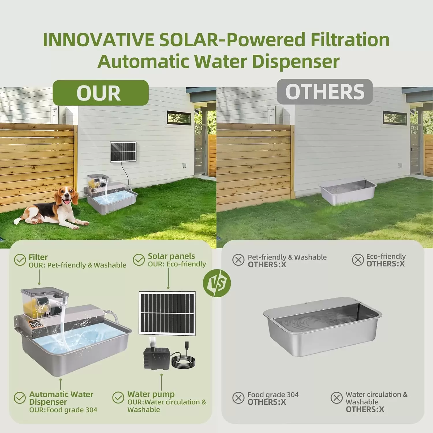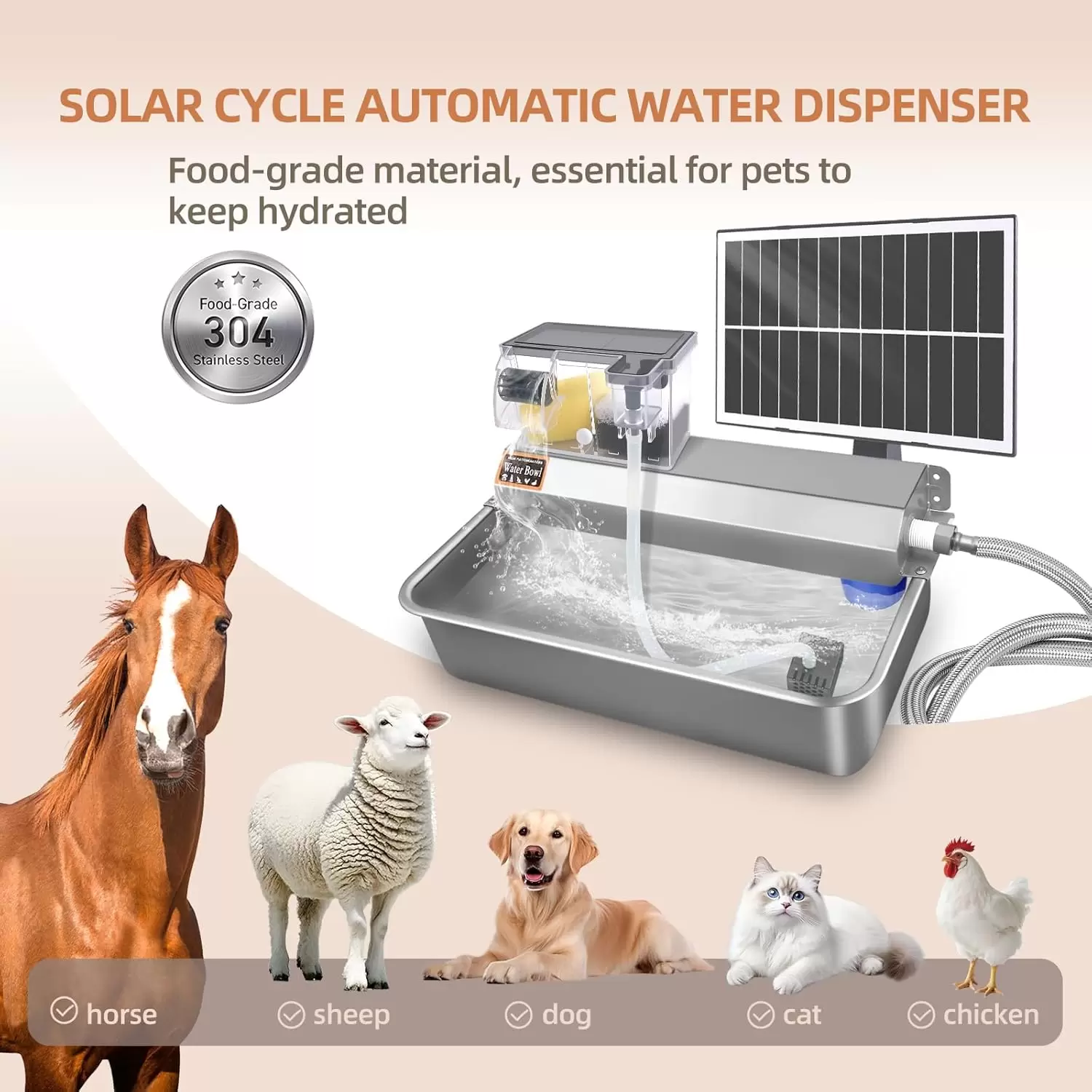 Bebedero Solar Exterior 3 Litros Acero Inoxidable Perros Ganado y Relleno Automatico
