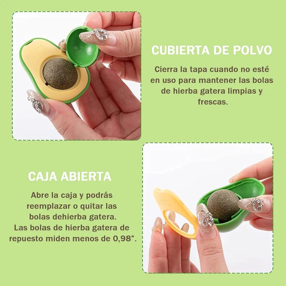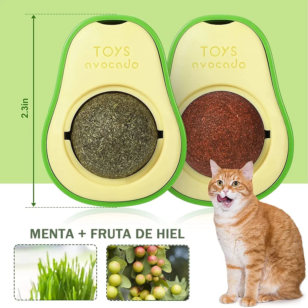 【Diseño único】 Las bolas comestibles de hierba gatera se colocan en un lindo recipiente con forma de aguacate y se pueden sacar para su uso. Dos bolas de hierba gatera le permiten a tu gato elegir su sabor favorito o el sabor que quieres que pruebe.