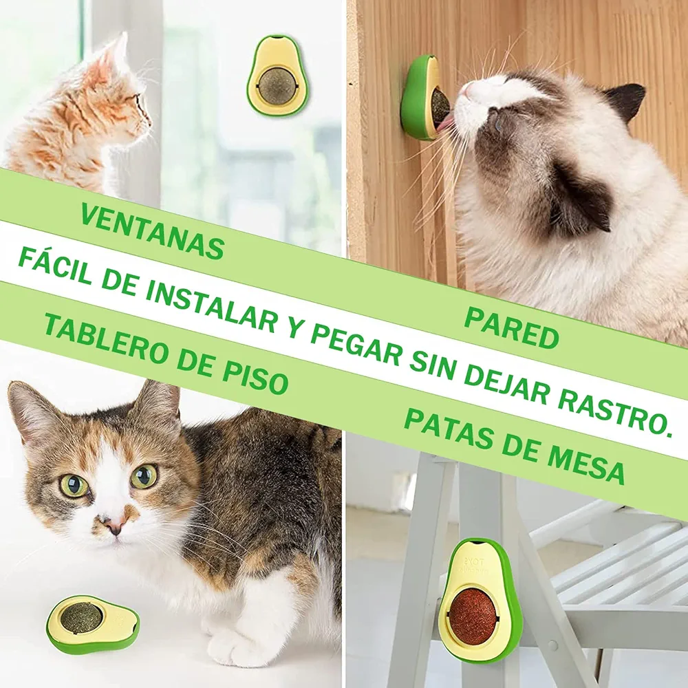 Bola de Catnip para Gatos | Juguete de Hierba Gatera Adhesiva Giratoria 360°