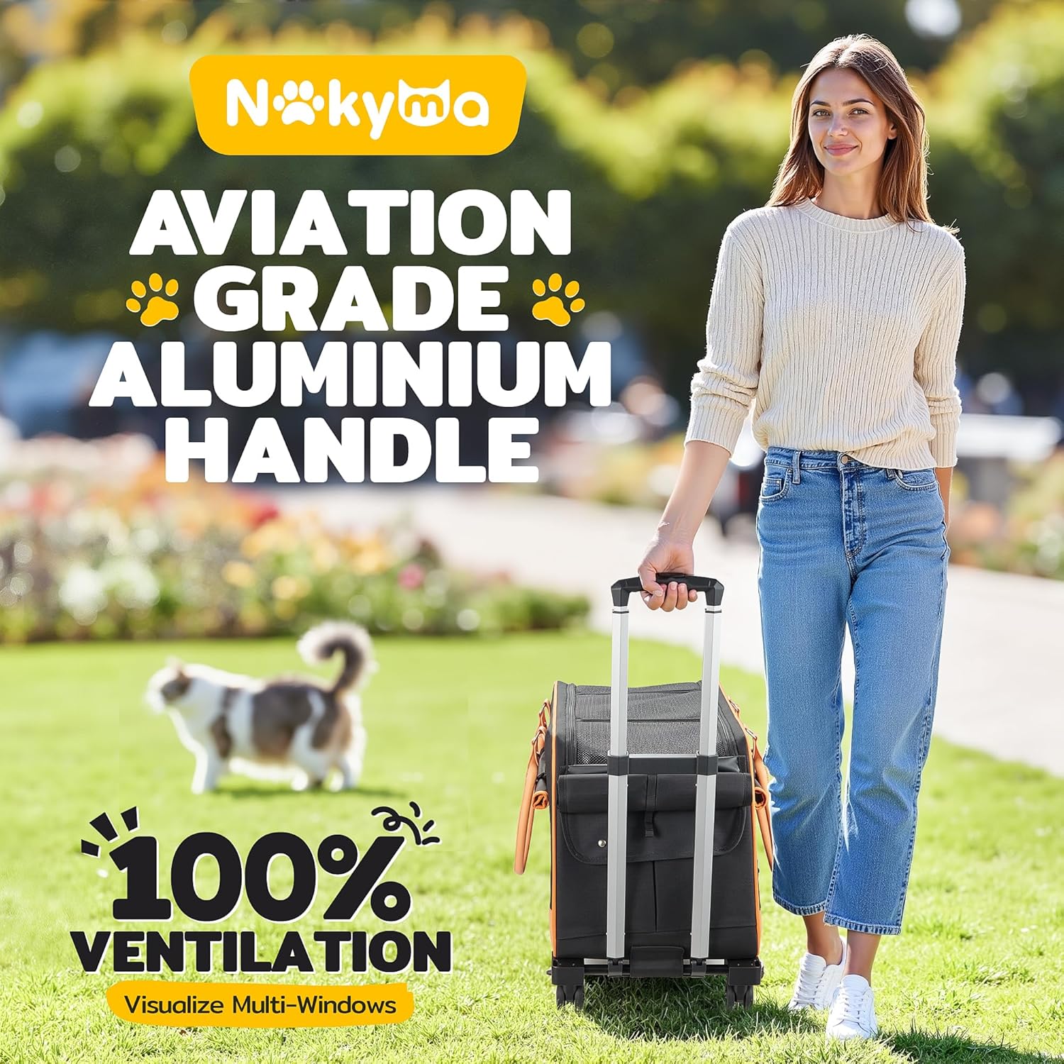 Excelente diseño estructural: estructura totalmente plegable, fácil de almacenar. Carro de aluminio de grado aeronáutico diseñado ergonómicamente para ajustar la longitud de la barra de la carretilla según la altura. Las ruedas de goma extraíbles son silenciosas y duraderas, probadas para soportar 1,000,000 de impactos. La bolsa para mascotas se puede utilizar por separado para viajes largos y cortos.