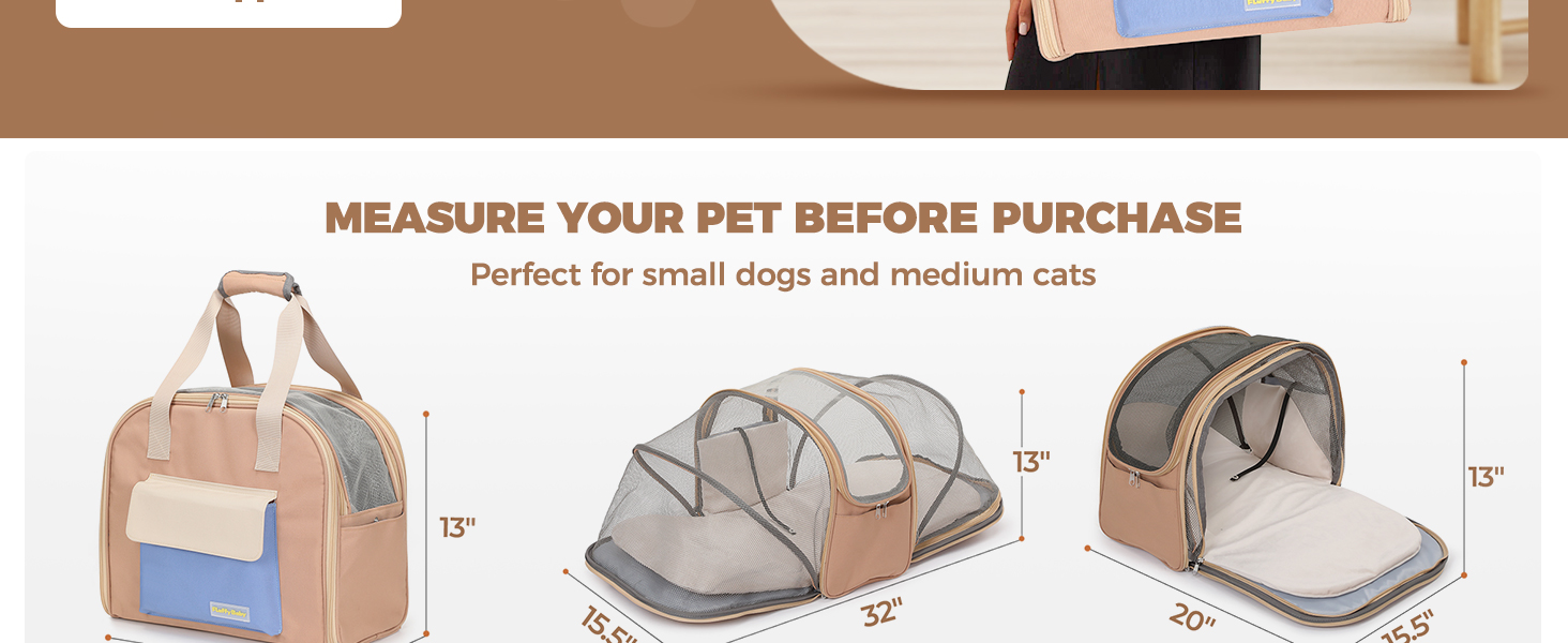 Adecuado para mascotas pequeñas y medianas: diseñado para gatos (por ejemplo, siamés, Ragdoll) y perros pequeños (por ejemplo, Chihuahuas, Shih Tzus) de menos de 25 libras. El espacio ampliado de 32 pulgadas garantiza comodidad para mascotas de hasta 12 pulgadas de alto, perfecto para viajes largos o visitas al veterinario.