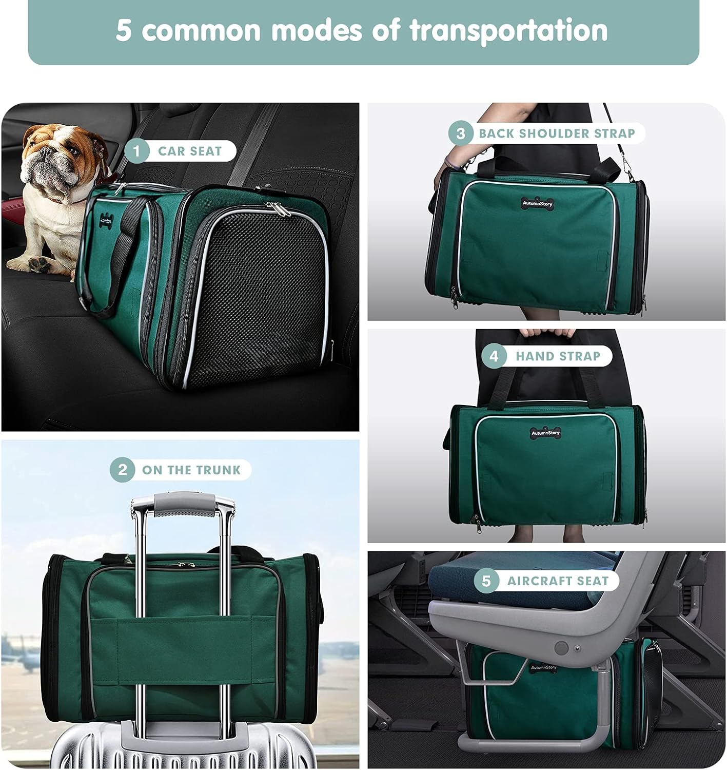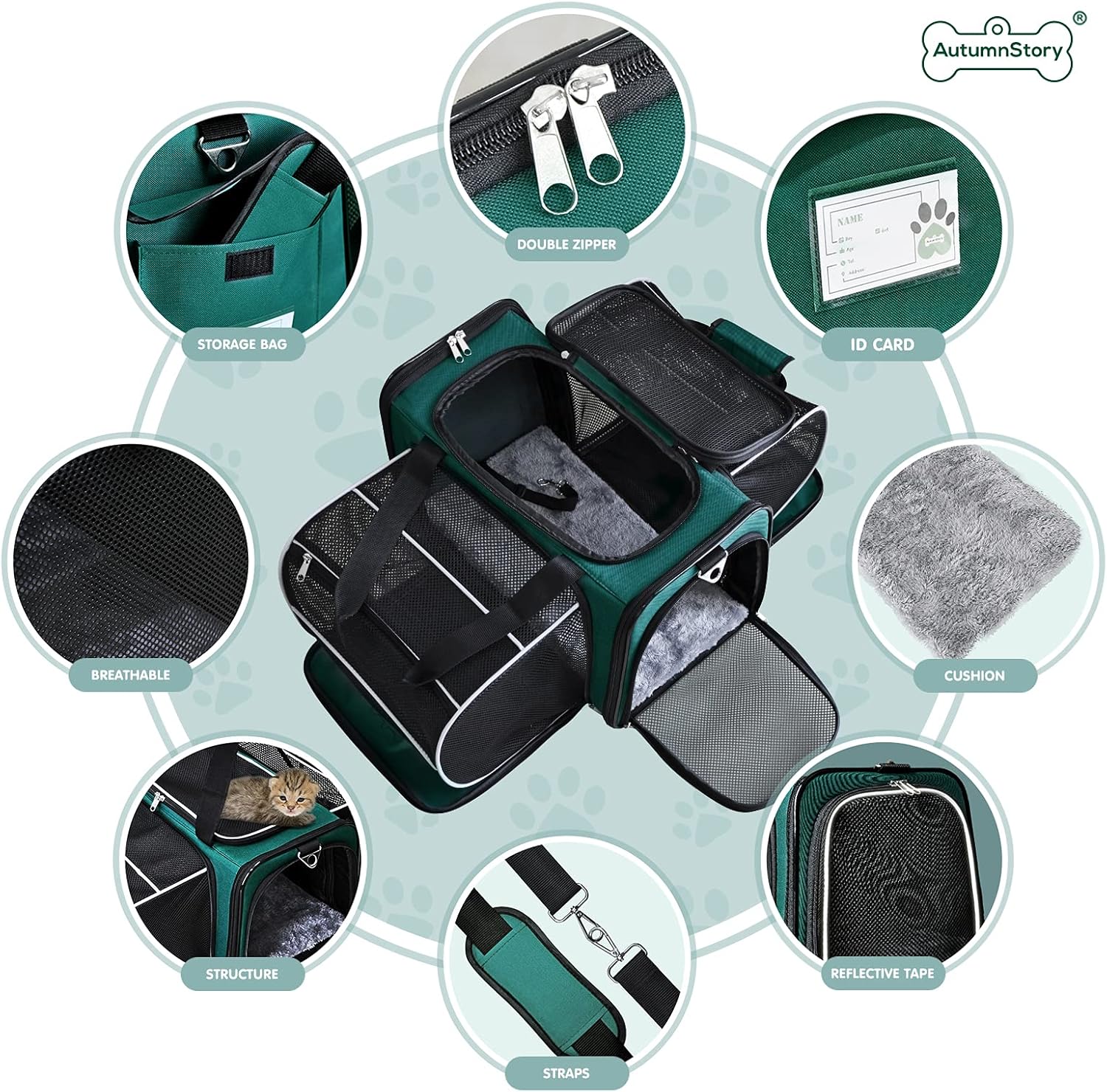 Seguridad y comodidad: el transportador para perros AutumnStory tiene 3 aberturas equipadas con doble cremallera. Se agregan cintas reflectantes plateadas para el reconocimiento nocturno. El cinturón de seguridad puede evitar que las mascotas escapen. La bolsa de almacenamiento en el lateral puede contener bolsas de basura, comida o tazón plegable. La capa intermedia de PVC transparente se utiliza para colocar la tarjeta de identificación de mascotas. Cojín extraíble de felpa con inserciones inferiores resistentes que garantiza un ambiente cómodo para las mascotas, que también es fácil de limpiar.