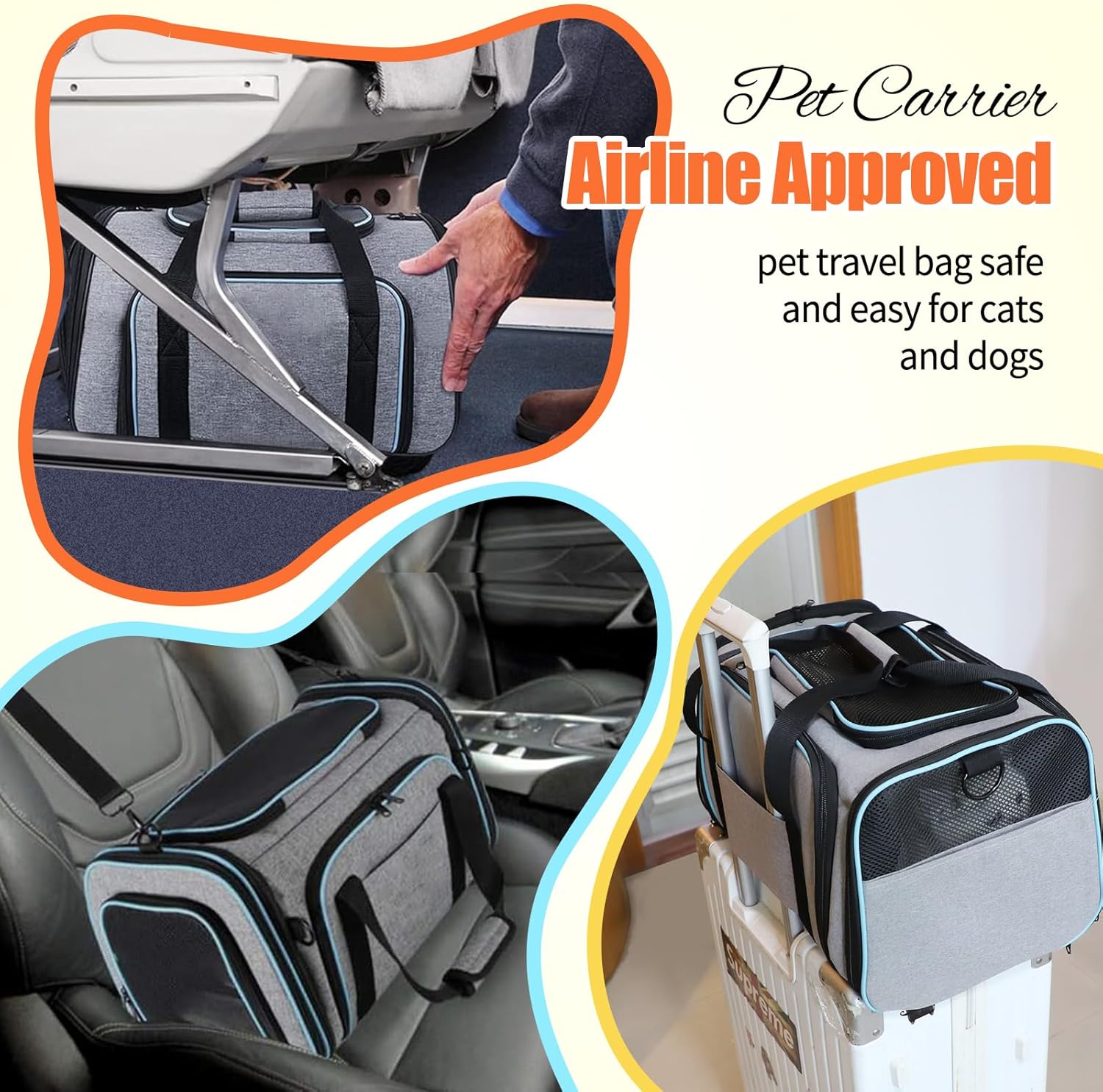 Aprobado por avión: el transportador de viaje para perros cumple con el tamaño estándar de las aerolíneas, cabe debajo del asiento delantero de la cabina de la mayoría de los transportadores de aerolíneas. Cada aerolínea tiene un conjunto específico de reglas y regulaciones, ponte en contacto con la aerolínea antes de volar con tu mascota.