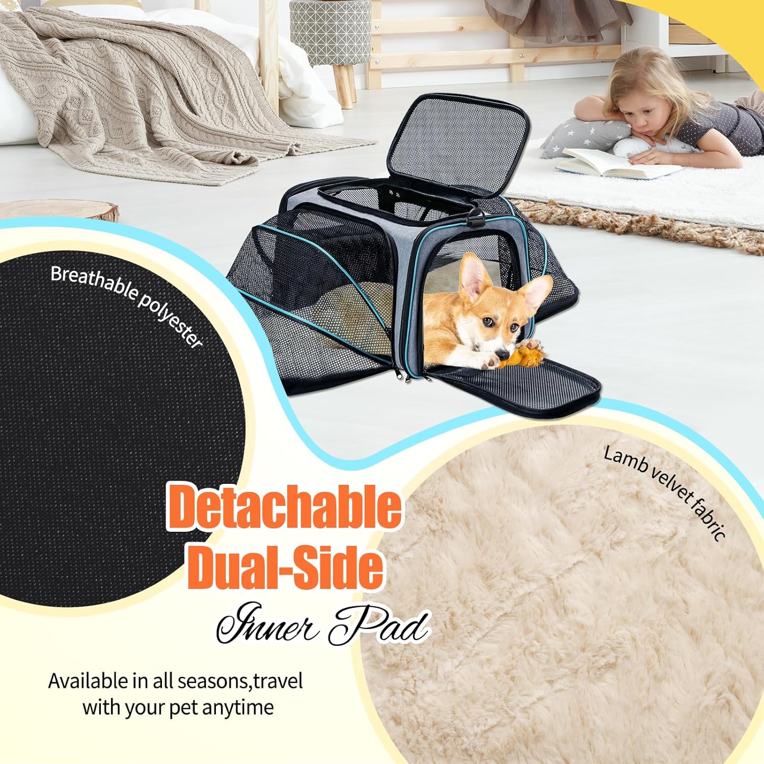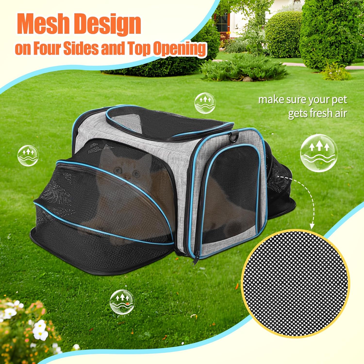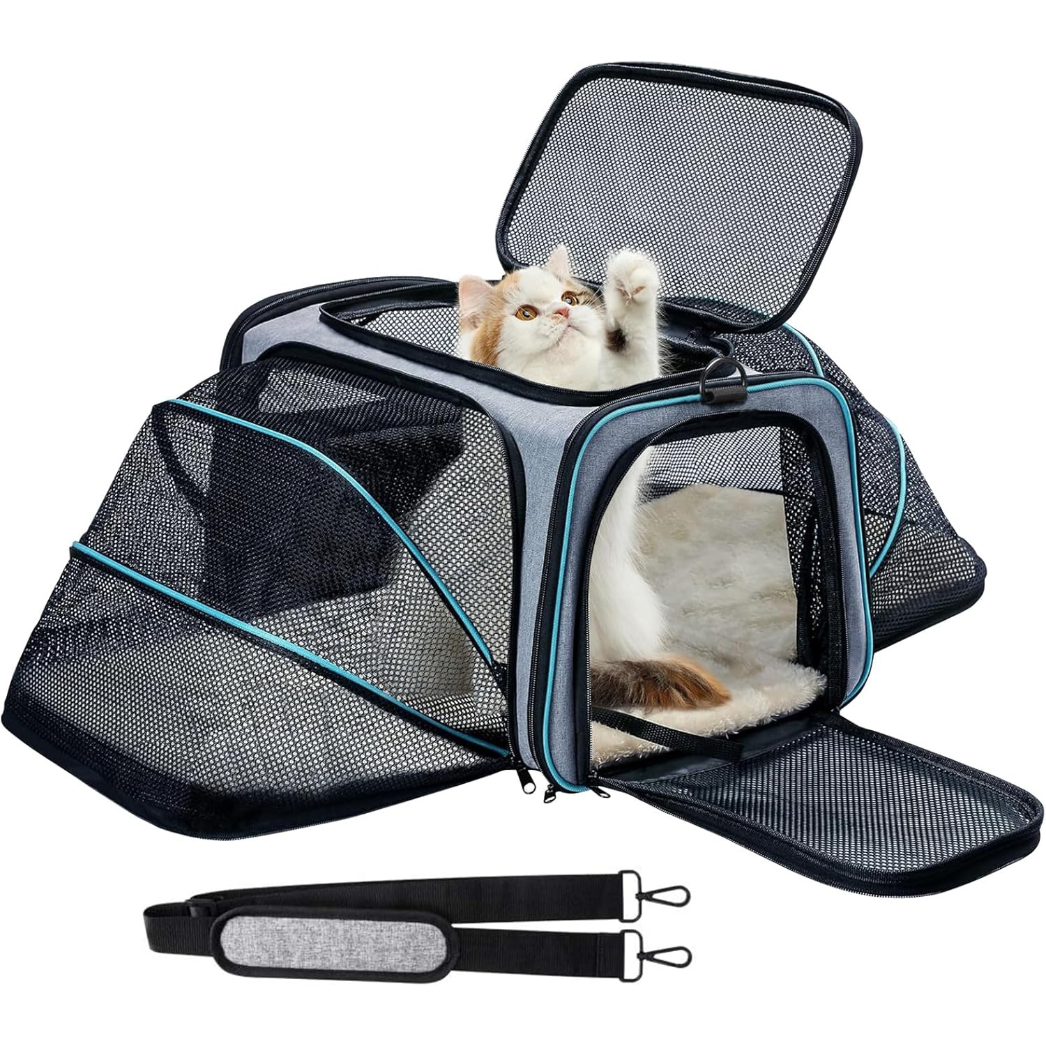 Fácil de transportar: el transportador para gatos está diseñado con una almohadilla de polipropileno duro en la parte inferior, ayuda a sostener y aumentar el frijol de carga, evita la deformación cuando se lleva en el transportador. La almohadilla está hecha de gamuza y poliéster, lavable y fácil de limpiar. El paño de malla aumenta la ventilación y disminuye la ansiedad por viajar. Lleva el transportador expandible en avión, coche, a mano o al hombro.