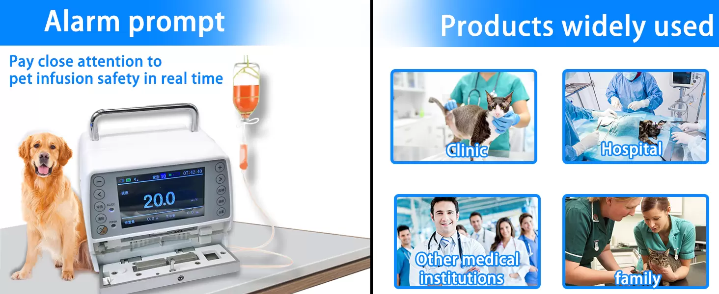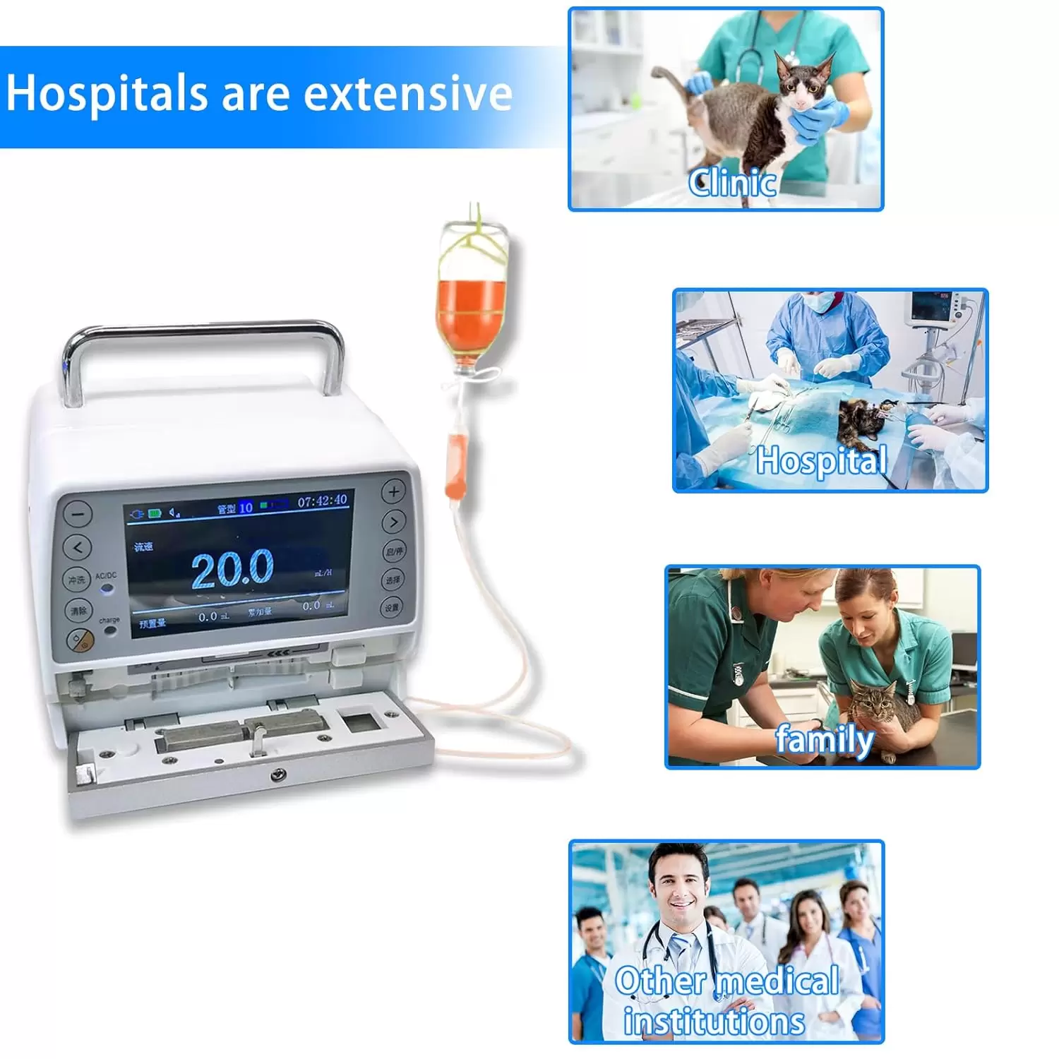 Ideal para el cuidado de animales y clínicas veterinarias: ya sea para mascotas pequeñas como perros y gatos o animales más grandes, esta bomba de infusión veterinaria automática proporciona una entrega precisa y segura de líquidos. Su precisión y portabilidad la convierten en una herramienta esencial para los profesionales veterinarios que desean garantizar que sus animales y mascotas experimenten tratamientos cómodos y efectivos.