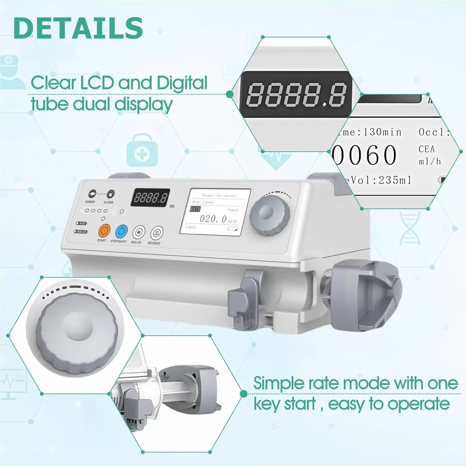 La bomba de jeringa veterinaria puede controlar con precisión la tasa de jeringa y monitorear el proceso de la jeringa para garantizar la seguridad y estabilidad de los animales. Adecuado para centros de mascotas y clínicas veterinarias.