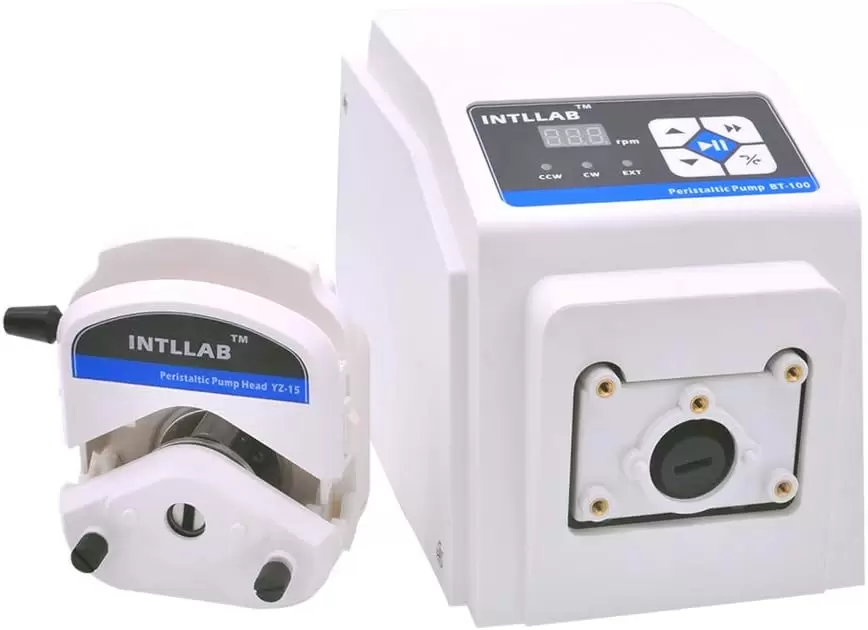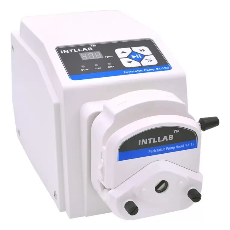 Bomba peristáltica de velocidad variable BT100 con cabezal YZ15. Es ideal para la dosificación precisa de fluidos en laboratorios y clínicas veterinarias en todo Chile.