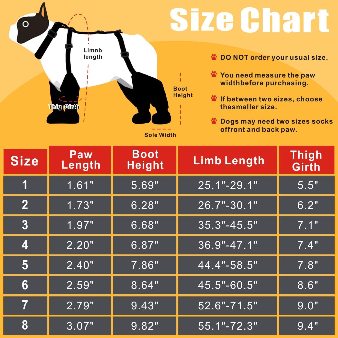 8 tamaños y 2 colores disponibles : diseñados con 8 tamaños, estas botas altas para perros son perfectas para razas de perros medianamente grandes y altas. Mide las tallas de tu perro antes de comprar de acuerdo con la tabla de tallas para un mejor esfuerzo. Y dale a tu lindo amigo unos minutos para que se acostumbre a los zapatos.