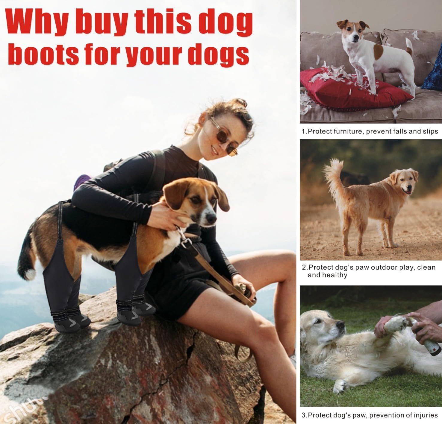 Fácil de usar : estos zapatos para perros de gran tamaño están diseñados con tela elástica en 4 direcciones que hace que deslizar las patas de tu perro dentro y fuera de los leggings fácilmente, dos velcro resistentes ajustables para un efecto adhesivo perfecto, y las correas ajustables te permiten apretar las correas tanto como sea posible para evitar que los zapatos se caigan de las patas del perro.