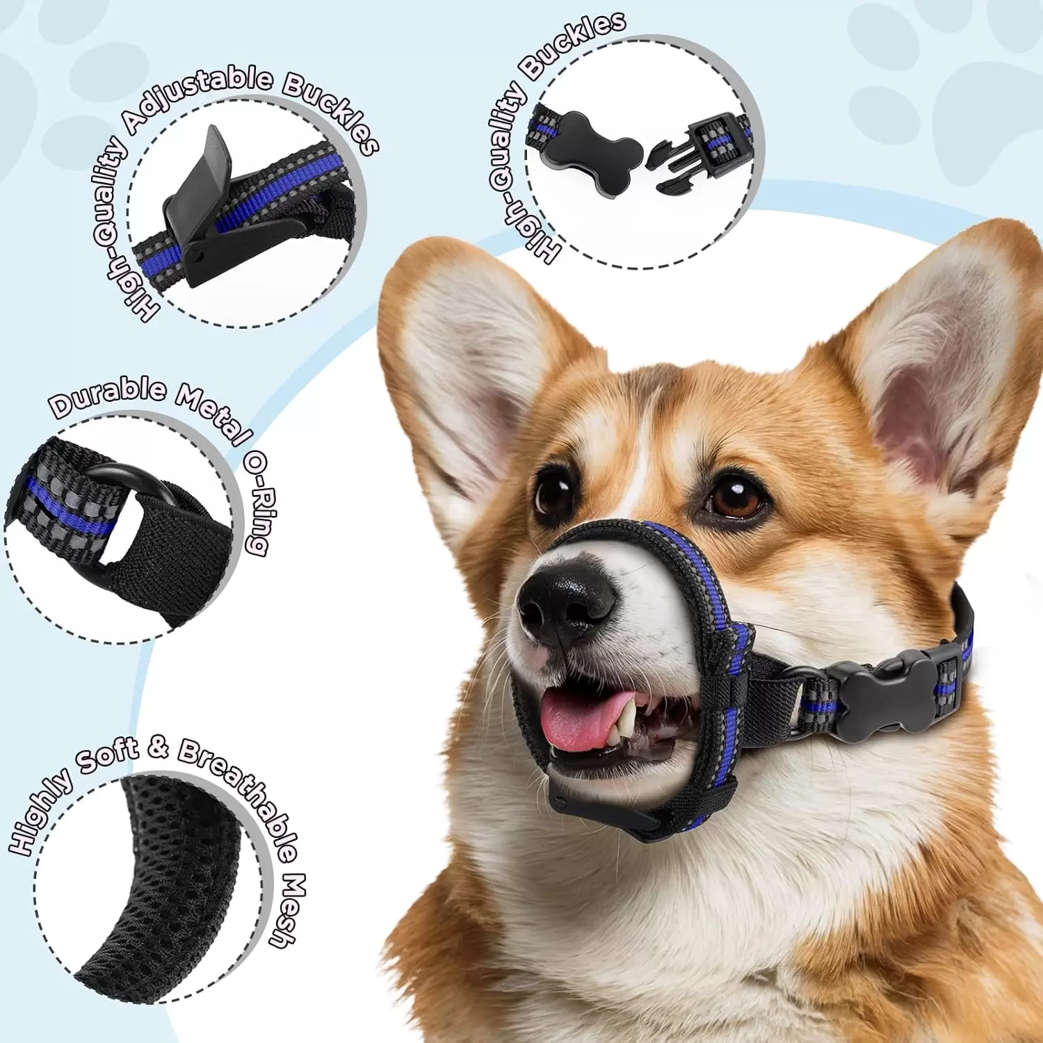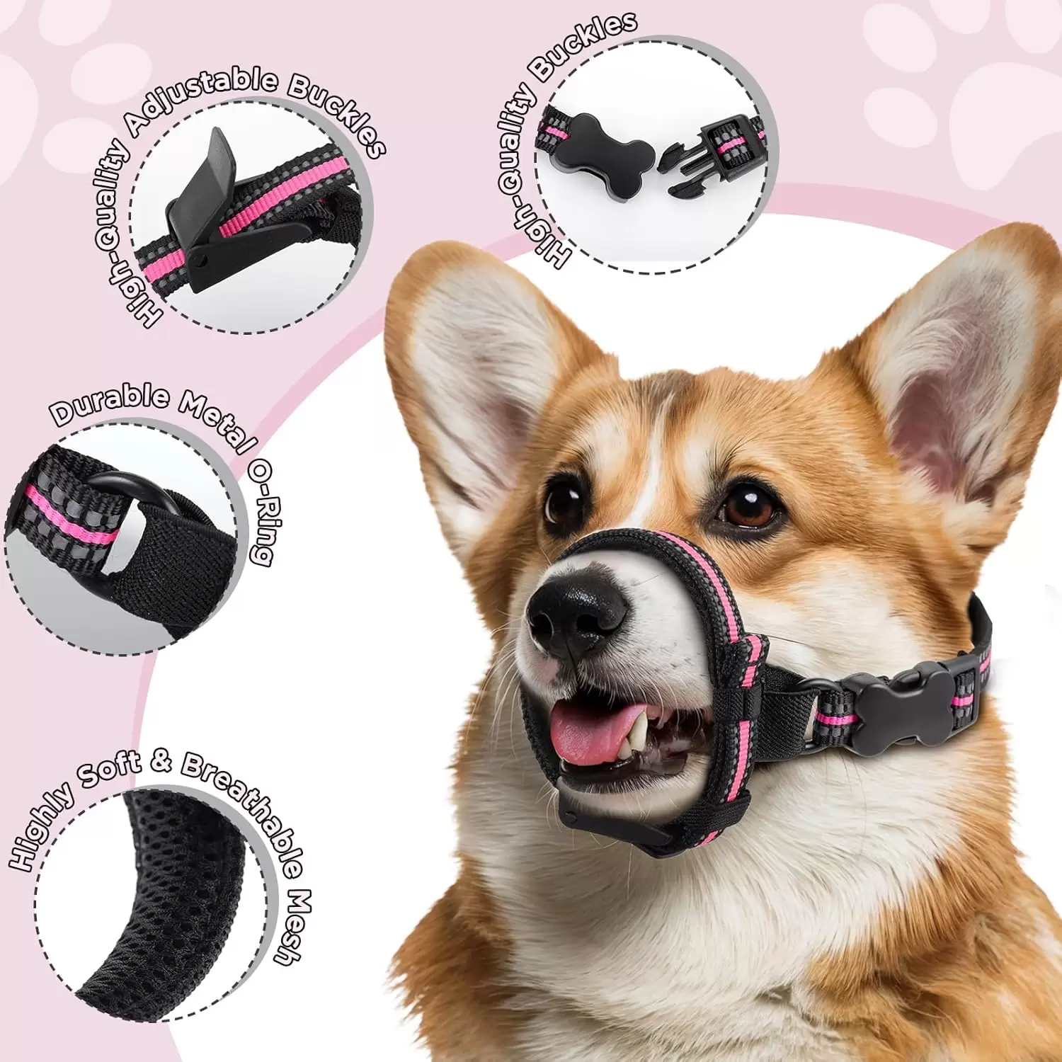 Diseño minimalista y seguro: a diferencia de los bozales de malla voluminosos, nuestra correa de nailon ajustable se sienta cómodamente detrás del hocico, evitando morder/masticar mientras permite un jadeo completo. La hebilla de liberación rápida garantiza un control confiable durante las visitas al veterinario o el aseo.
