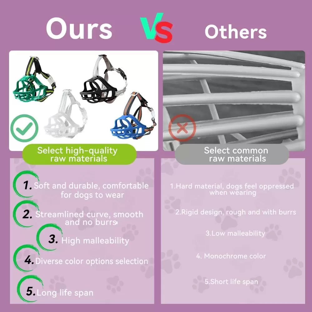 Ligero y duradero: hecho de silicona TPE inodora, este bozal es lo suficientemente ligero para perros pequeños, pero lo suficientemente fuerte y resistente para perros medianos y grandes, asegurando durabilidad y seguridad durante el uso diario.