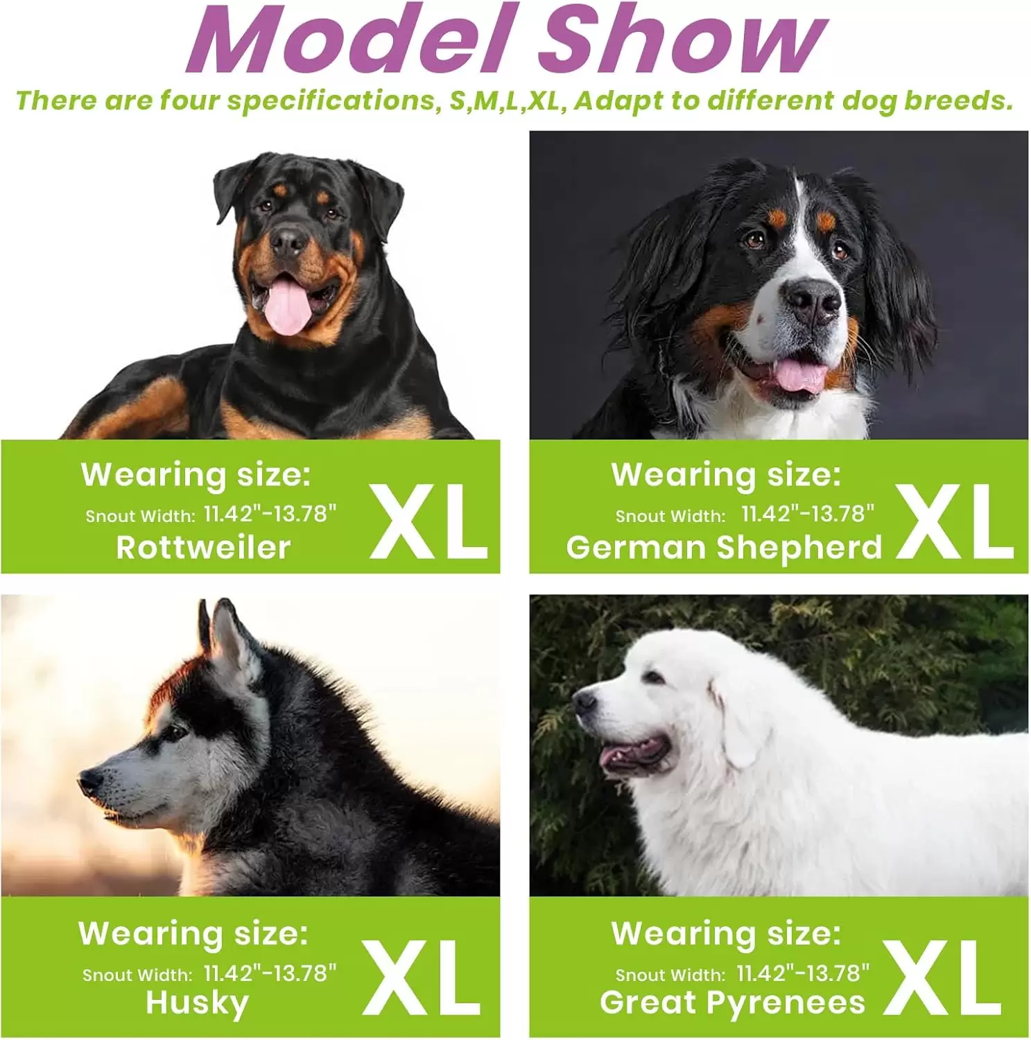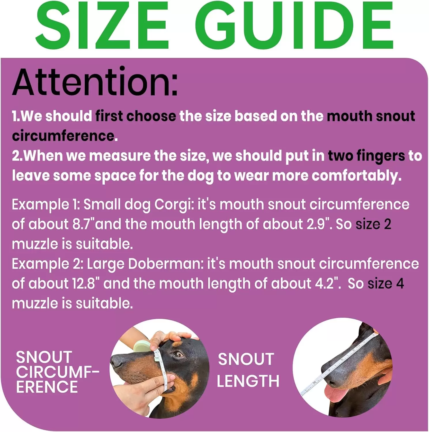 Mide antes de comprar: mide tanto la circunferencia del hocico como la longitud del hocico antes de comprar. Si la longitud del hocico de tu perro excede el rango de tamaño en aproximadamente 1 pulgada, elige la siguiente talla más. Para razas de hocico largo como Dobermans, asegúrese de que la longitud del hocico también se ajuste.