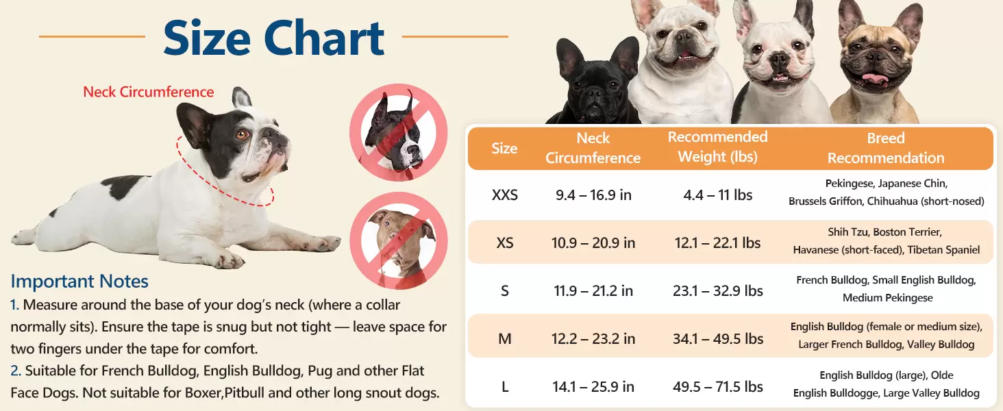 Diseñado para razas de cara plana: la correa elástica ajustable garantiza un ajuste seguro y cómodo para tu cachorro único, y la correa tejida proporciona durabilidad y resistencia adicionales al tirón. Este hocico corto para perros está especialmente diseñado para razas braquicefálicas como Bulldogs franceses, pug, Shih Tzus, Boston Terrier y matones.