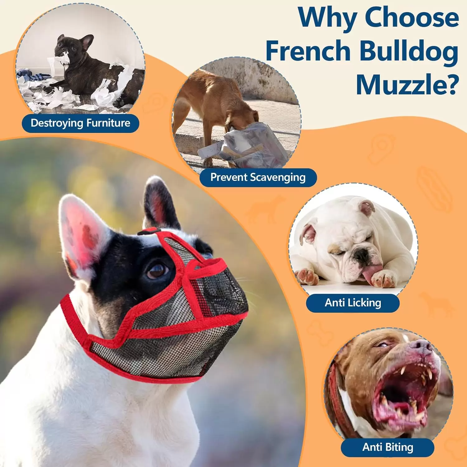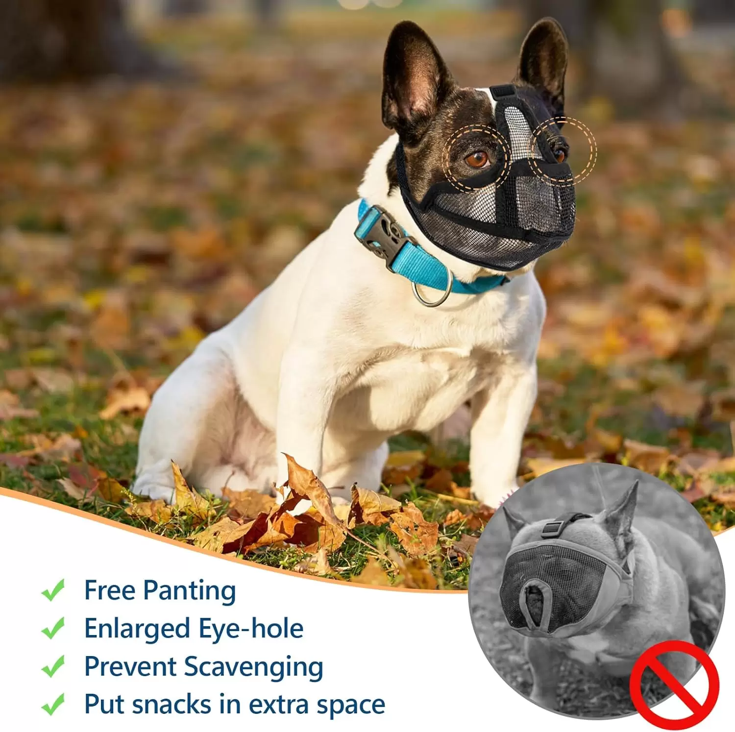 Bozal de Malla para Perros de Hocico Corto | Bozal Transpirable y Suave para Pug y Bulldog Francés