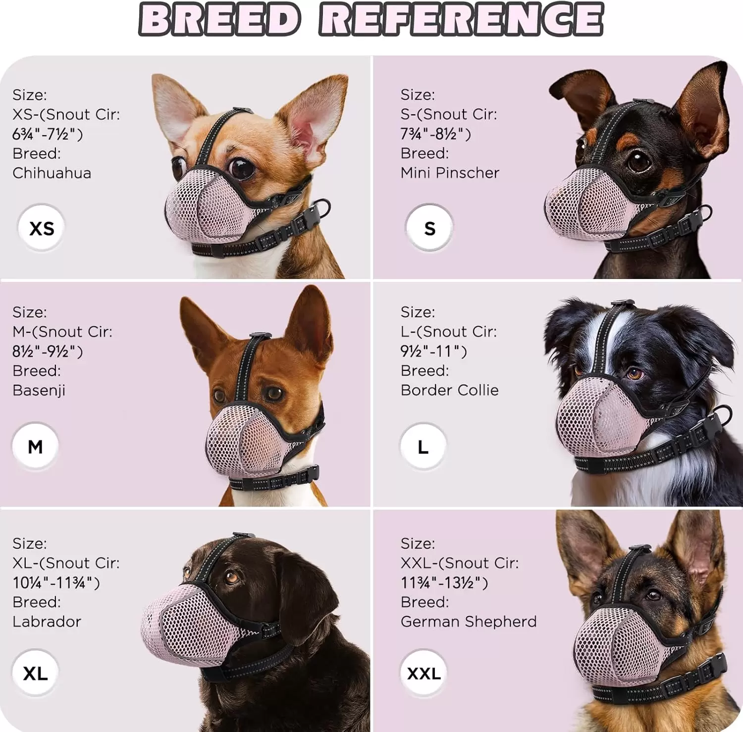 | Tallas | Hocico Circular 2XL (28-33 Cm), Hocico Circular L (22-28 Cm), Hocico Circular M (20-22 Cm), Hocico Circular S (17-20 Cm), Hocico Circular XL (25-28 Cm), Hocico Circular XS (15-17 Cm) |