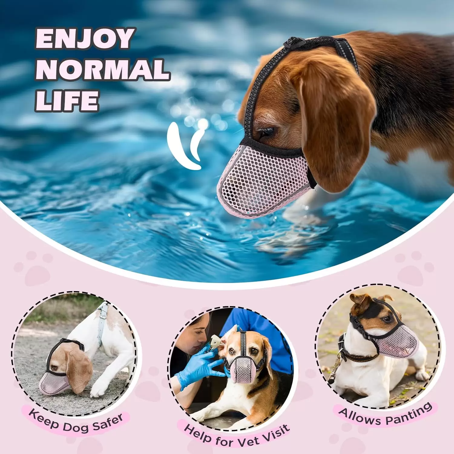 Un bozal de malla para perros en Chile. Es un bozal suave y transpirable, ideal para el aseo, paseos, y para evitar mordidas, permitiendo a tu perro jadear y beber.