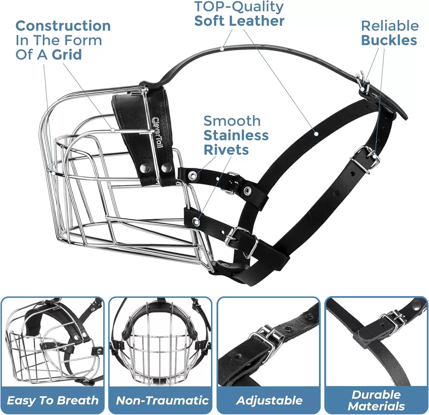 Materiales seguros y de primera calidad: hechos a mano con cuero genuino y acero resistente y liso, nuestros bozales de jaula para perros garantizan seguridad y calidad superior.