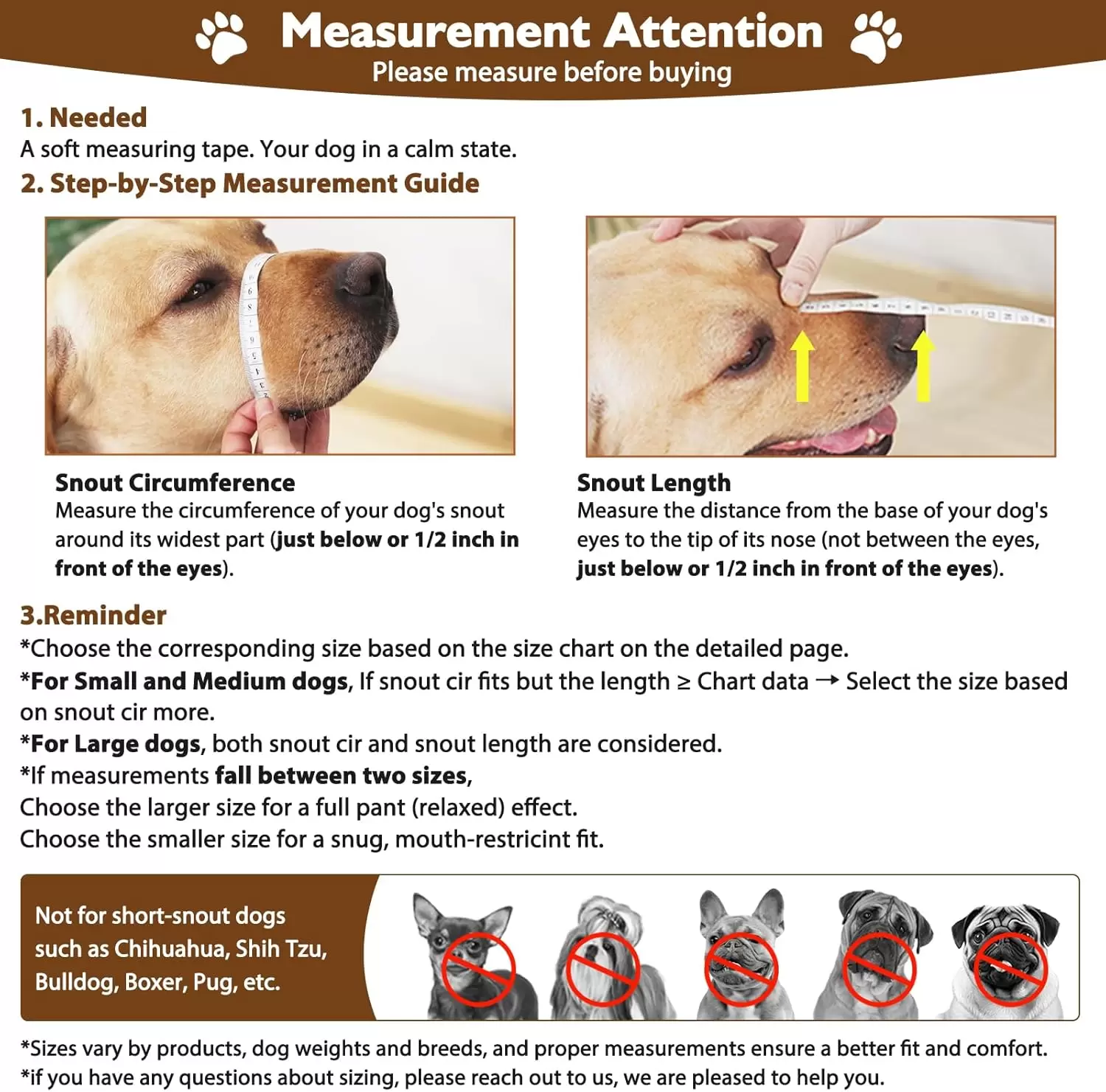 Sea paciente para acostumbrar a su perro a un bozal: cuando los perros se encuentran por primera vez con algo desconocido, como un bozal, es natural que se sientan asustados y resistentes. Sigue el manual de instrucciones, comienza con sesiones cortas con golosinas gratificantes y aumenta gradualmente la frecuencia, tu perro se acostumbrará gradualmente al hocico y dejará de pelear, destruir, pelear, cavar, carroñar y masticar.