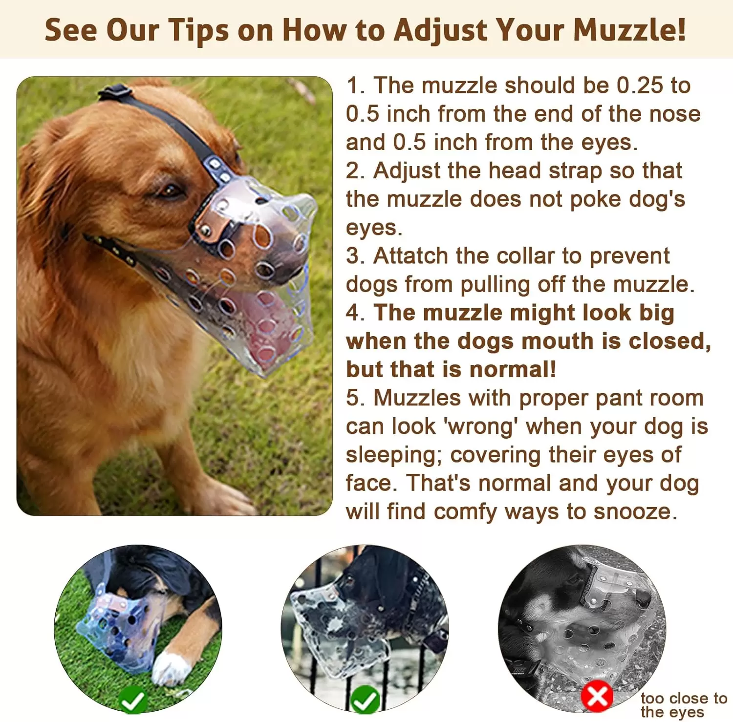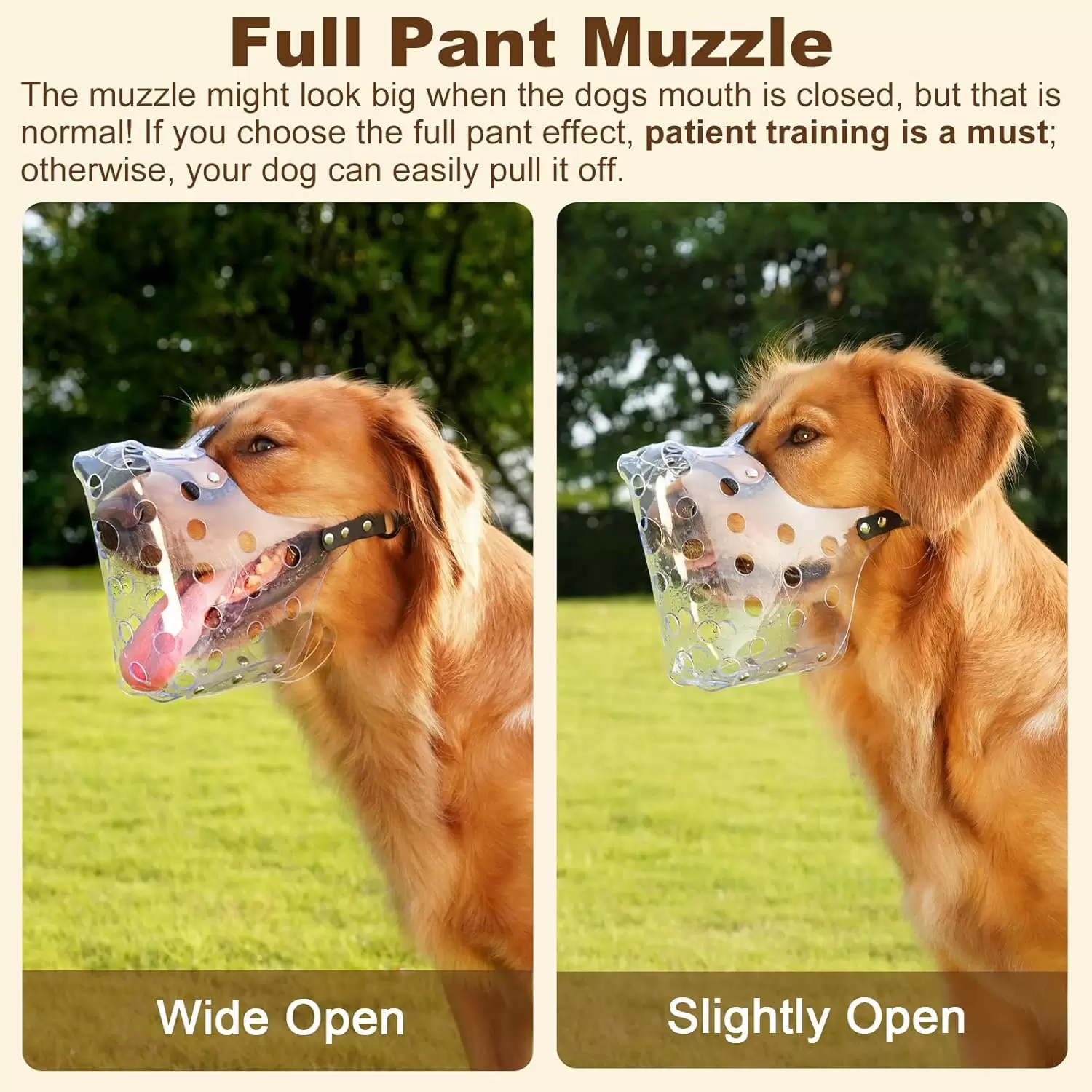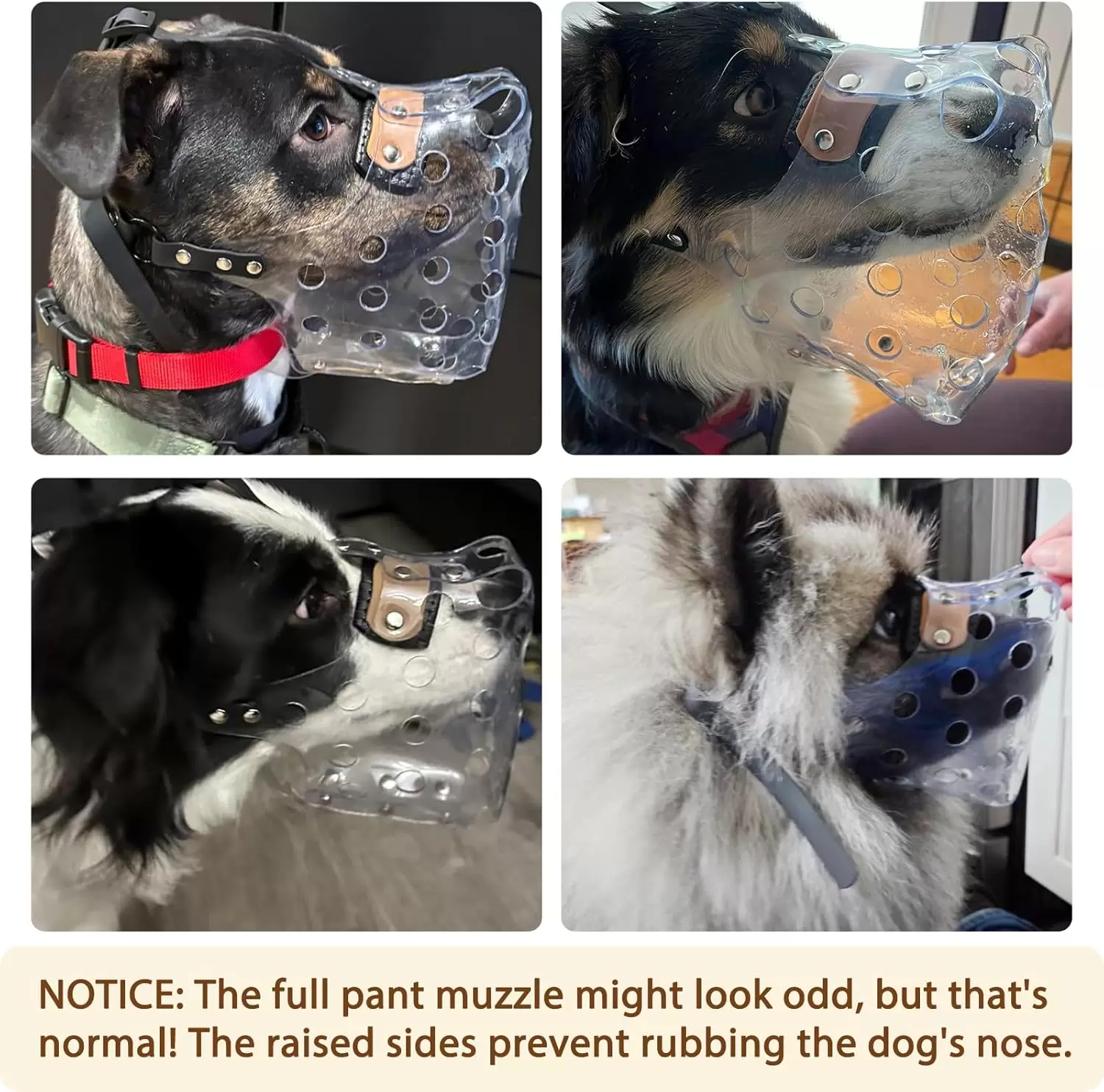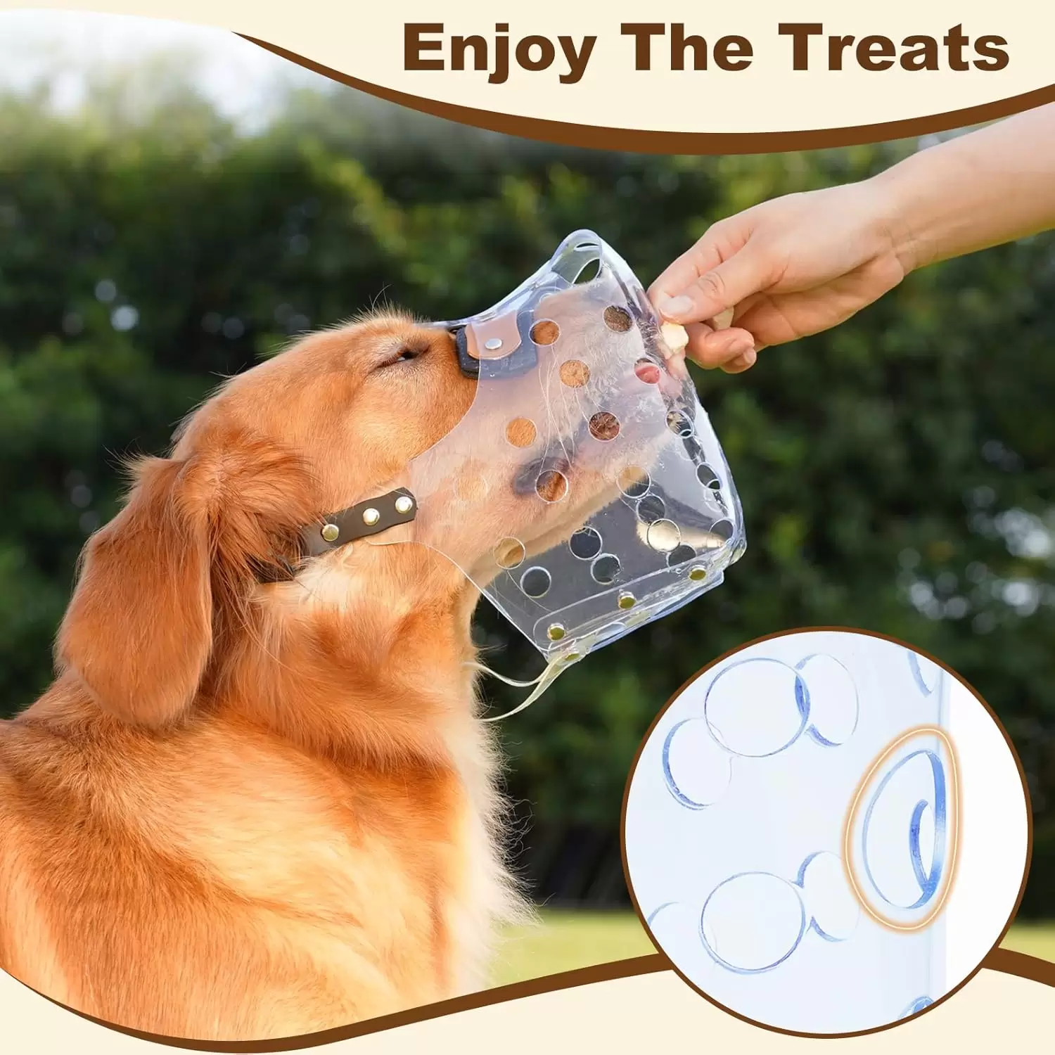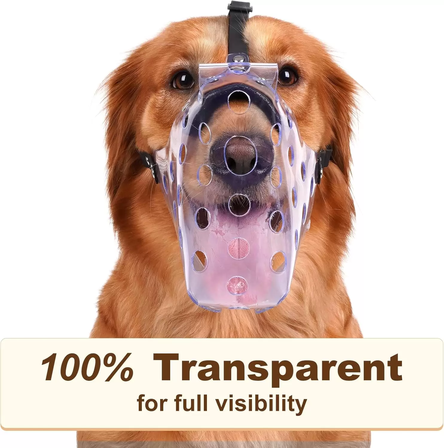 Bozal transparente para perros: con un diseño de PVC transparente, el bozal para perros de gran tamaño ofrece una visión sin obstáculos de las expresiones de su perro, lo que le permite mantenerse al tanto de su estado actual.