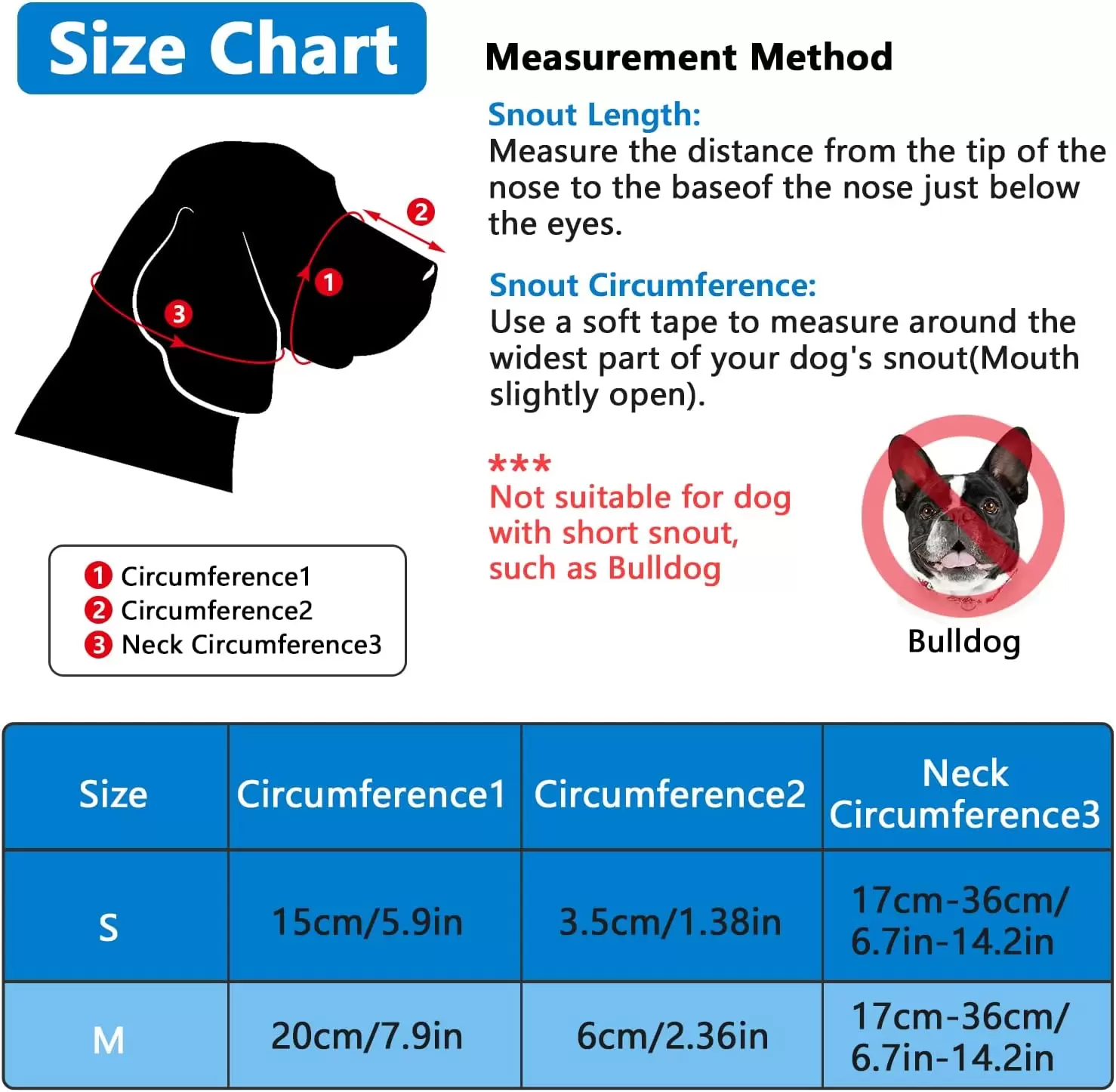 Bozal para perros para razas pequeñas y medianas: asegúrate de medir la longitud y la circunferencia de la nariz de tu cachorro antes de realizar el pedido. Hay 2 tamaños diferentes para elegir, puedes encontrar el tamaño más adecuado para tu cachorro, proporcionamos la tabla de medidas y el procedimiento. No dudes en ponerte en contacto con nosotros si tienes algún problema para medir el tamaño.