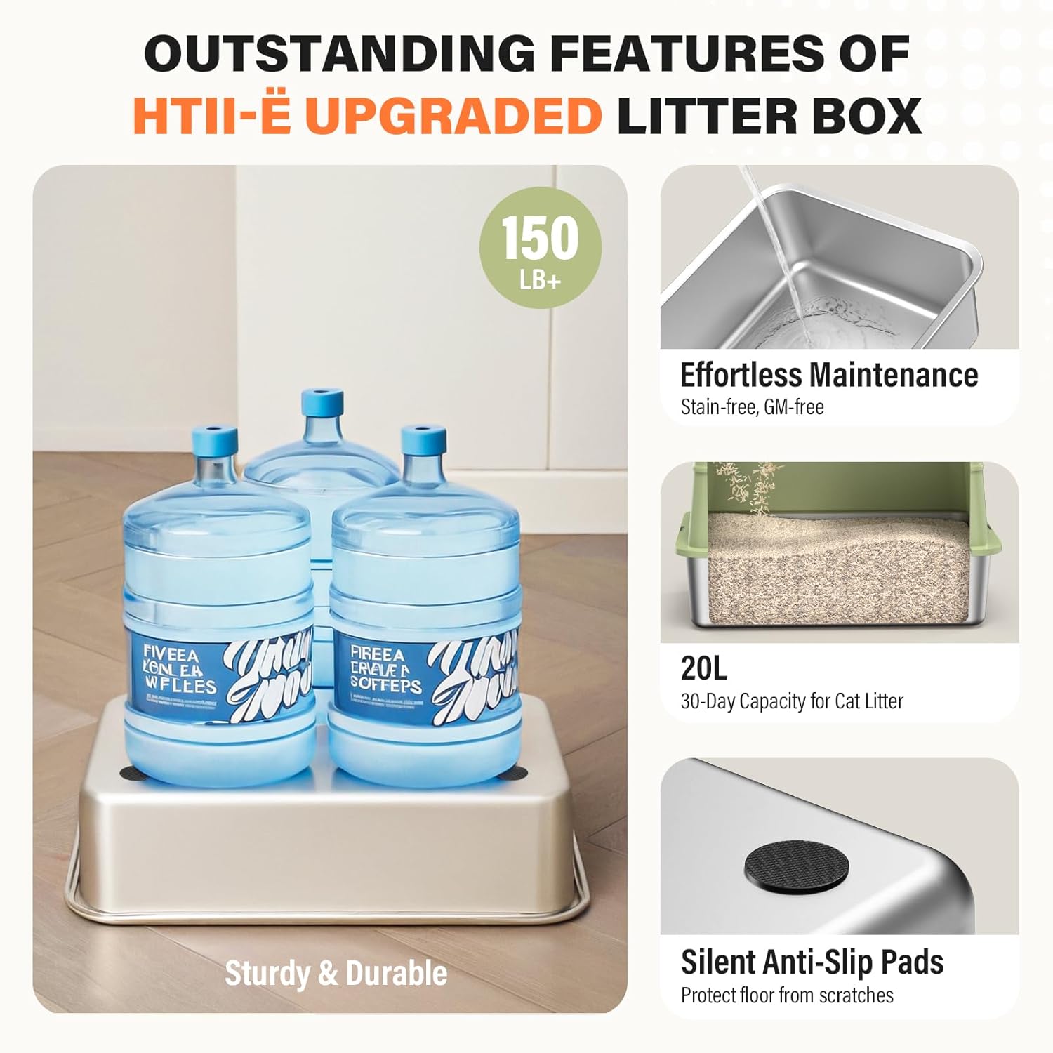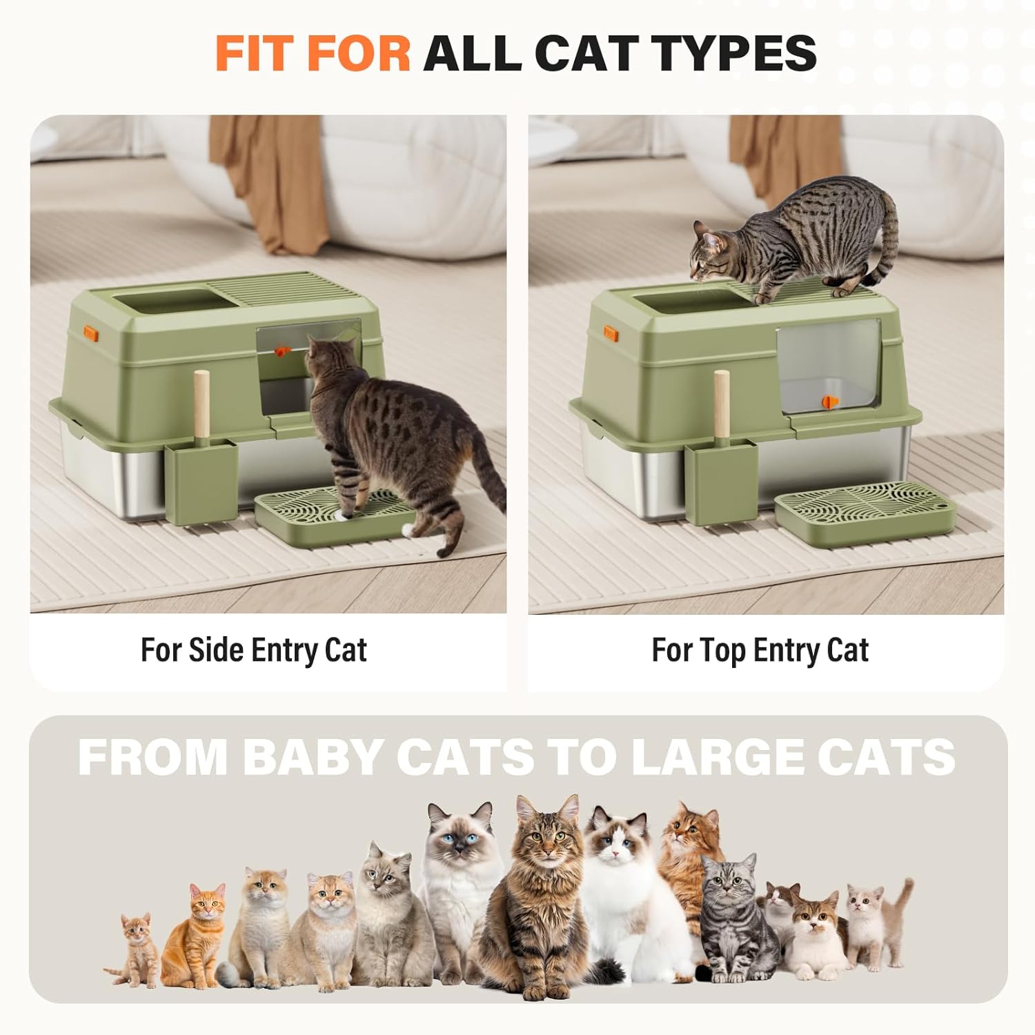 Mantenimiento y limpieza sin esfuerzo: disfruta de una limpieza fácil y un espacio libre de olores con nuestra caja de arena para gatos de acero inoxidable. Su superficie antiadherente garantiza una limpieza sin complicaciones, a diferencia de las bases de plástico que absorben manchas y olores. Fácil de mantener un ambiente fresco 365 días con el mínimo esfuerzo.