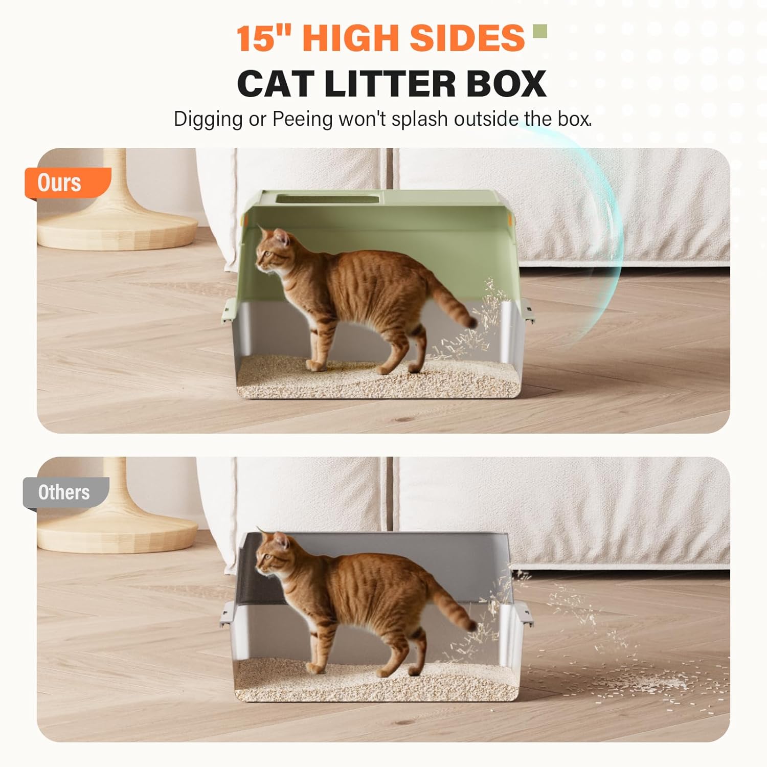 Cuidado de 360 ° para gatos que orinan alto: nuestro diseño cerrado de caja de arena para garantizar un área de arena libre de desorden. Hecho para excavadores y compañeros altos, mantiene tu piso limpio y seco. Di adiós a la basura dispersa y los derrames de orina.