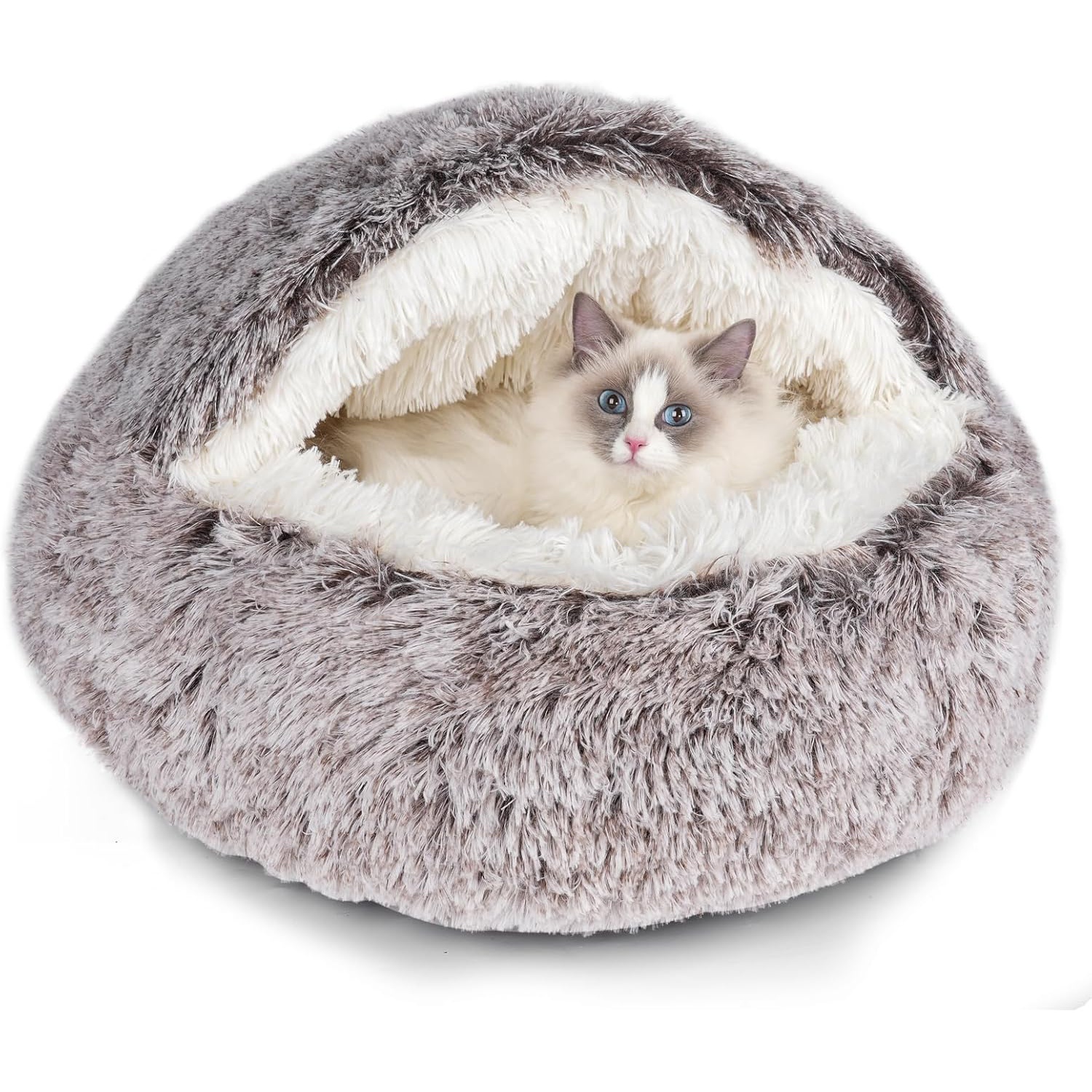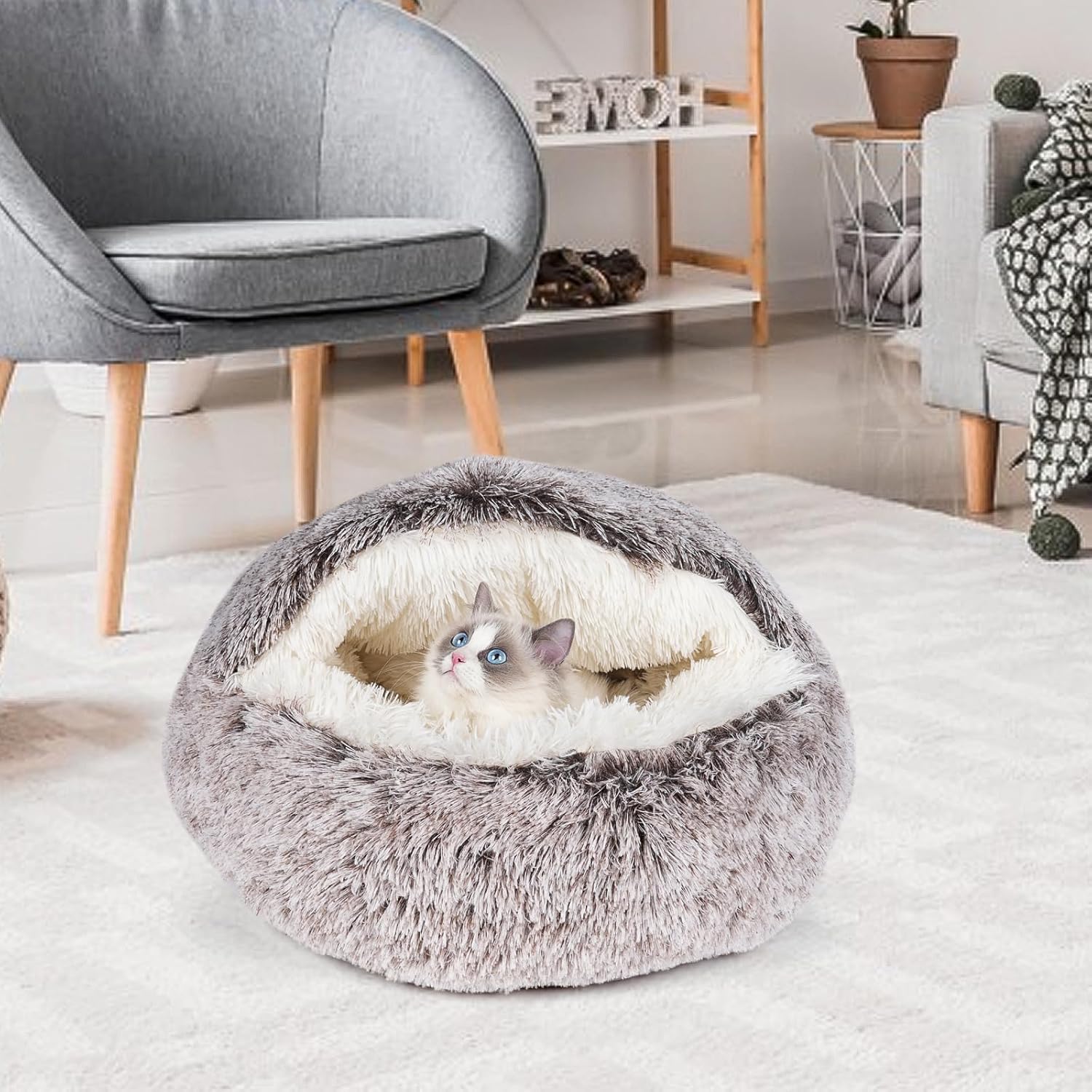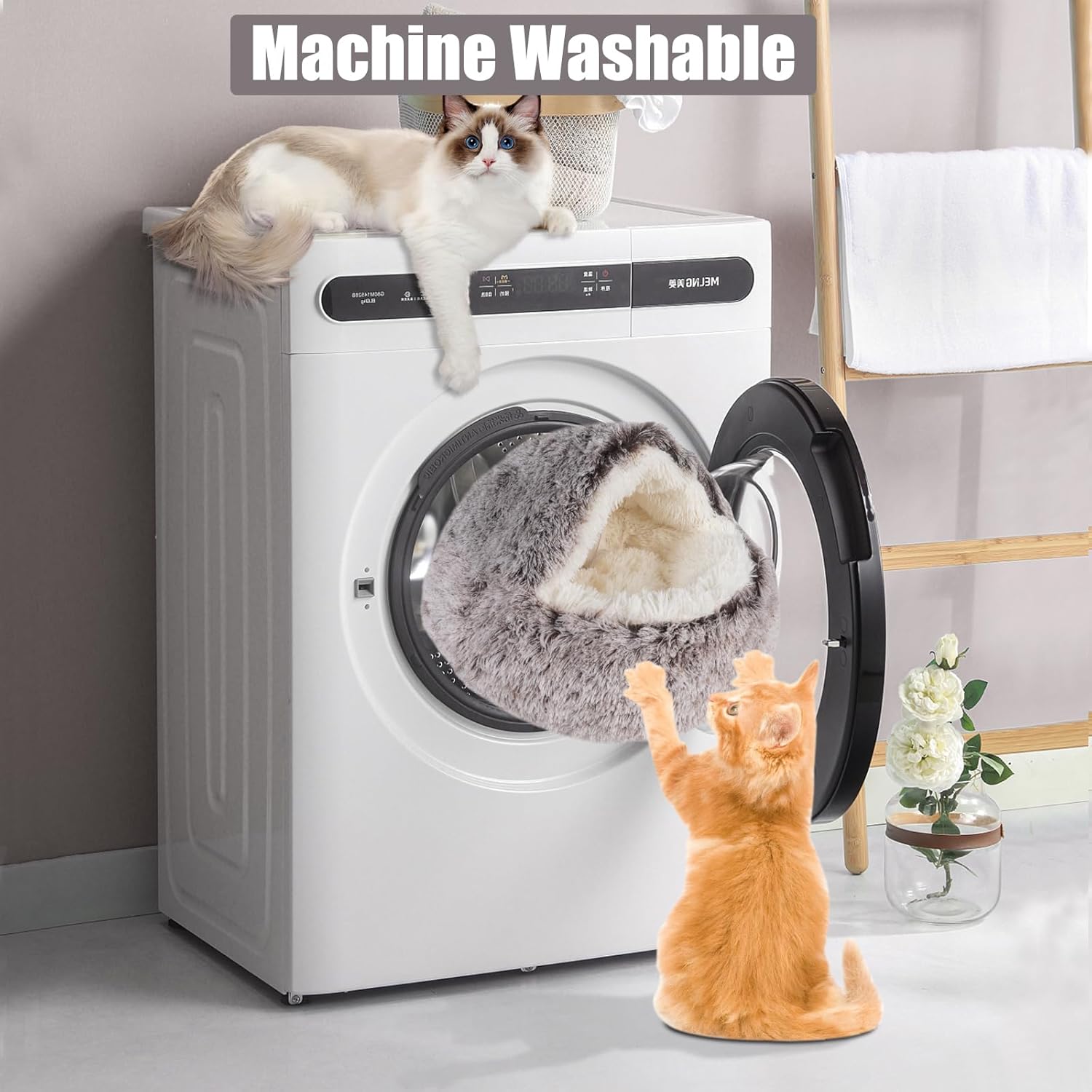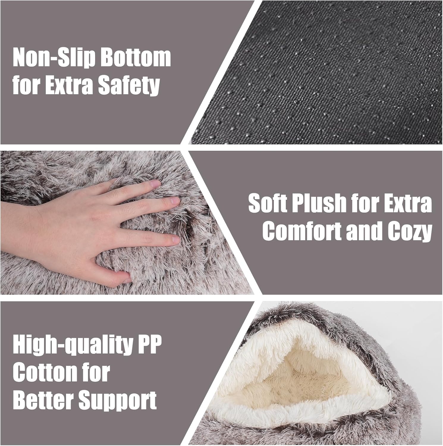 Diseño de cueva: la cama para mascotas presenta un diseño de semicueva, con un techo de felpa que sigue siendo resistente para atender a las mascotas que buscan comodidad en las esquinas para una mayor seguridad. Además, al plegar la cubierta, se transforma en una cama para mascotas en forma de rosquilla que ofrece un apoyo óptimo para la cabeza y el cuello durante el sueño de tu mascota.