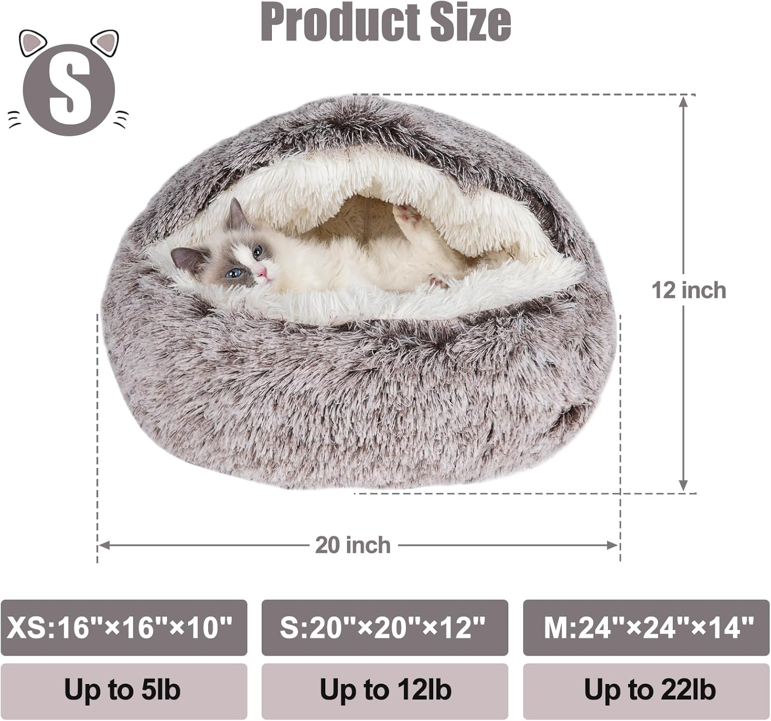 Tamaño del producto: nuestra bonita cama para gatos viene en 3 tamaños, camas con capucha para mascotas de 16 x 16 x 10 pulgadas para gatos y perros de hasta 5 libras, camas con capucha de 20 x 20 x 12 pulgadas para gatos y perros de hasta 12 libras, y camas con capucha de 24 x 24 x 14 pulgadas para perros y gatos de tamaño mediano de hasta 22 libras. NOTA: Cuando no esté seguro del tamaño, elija el más grande para mayor comodidad