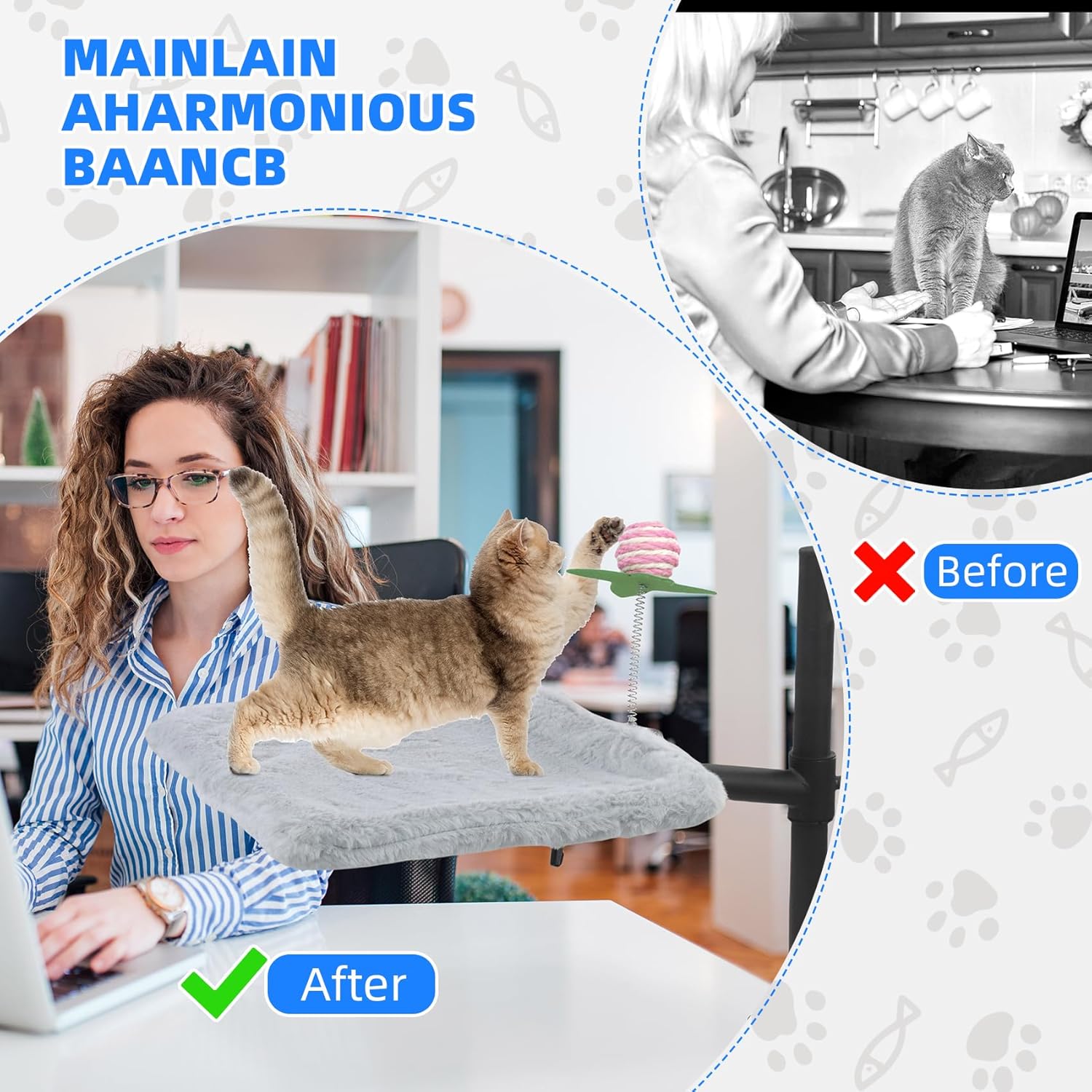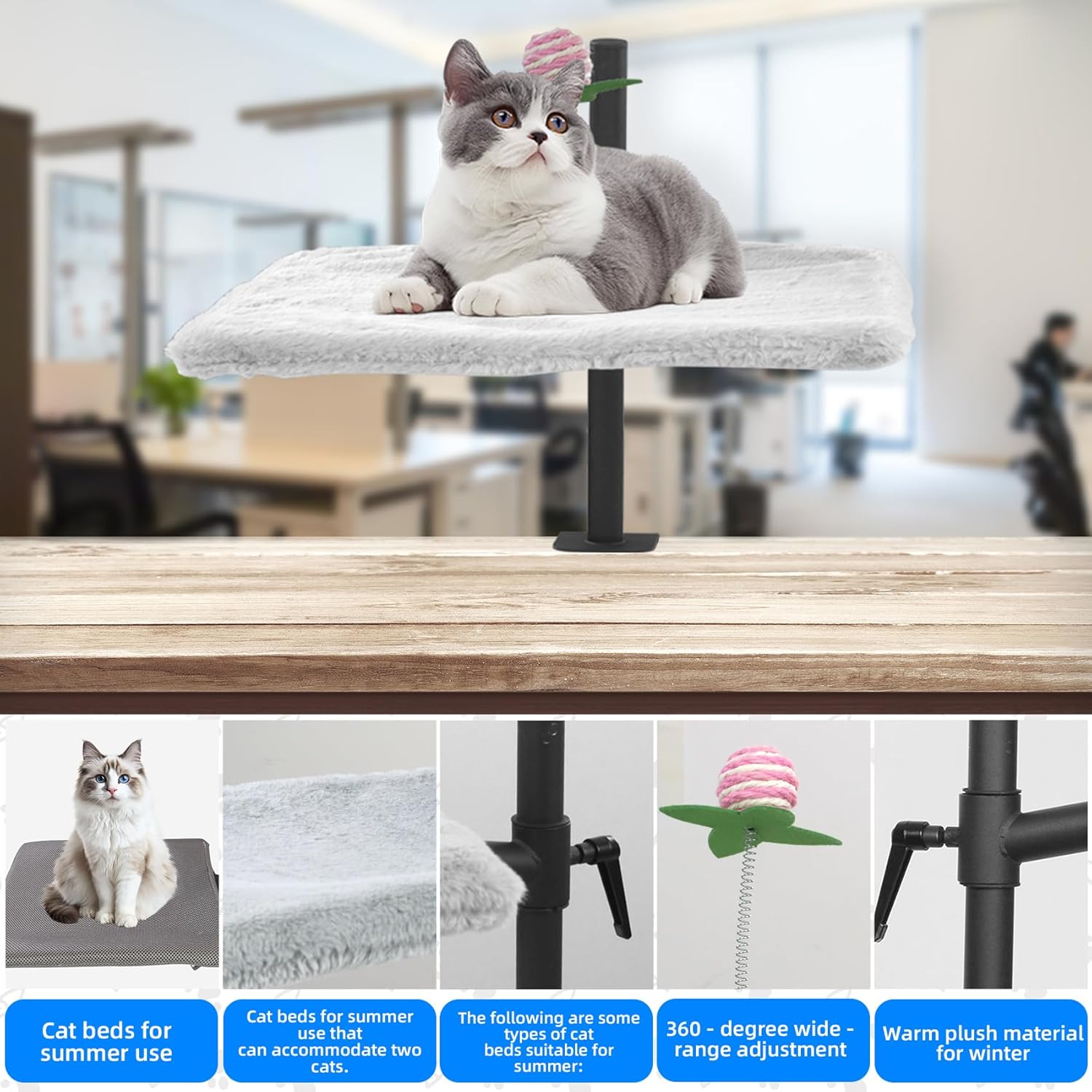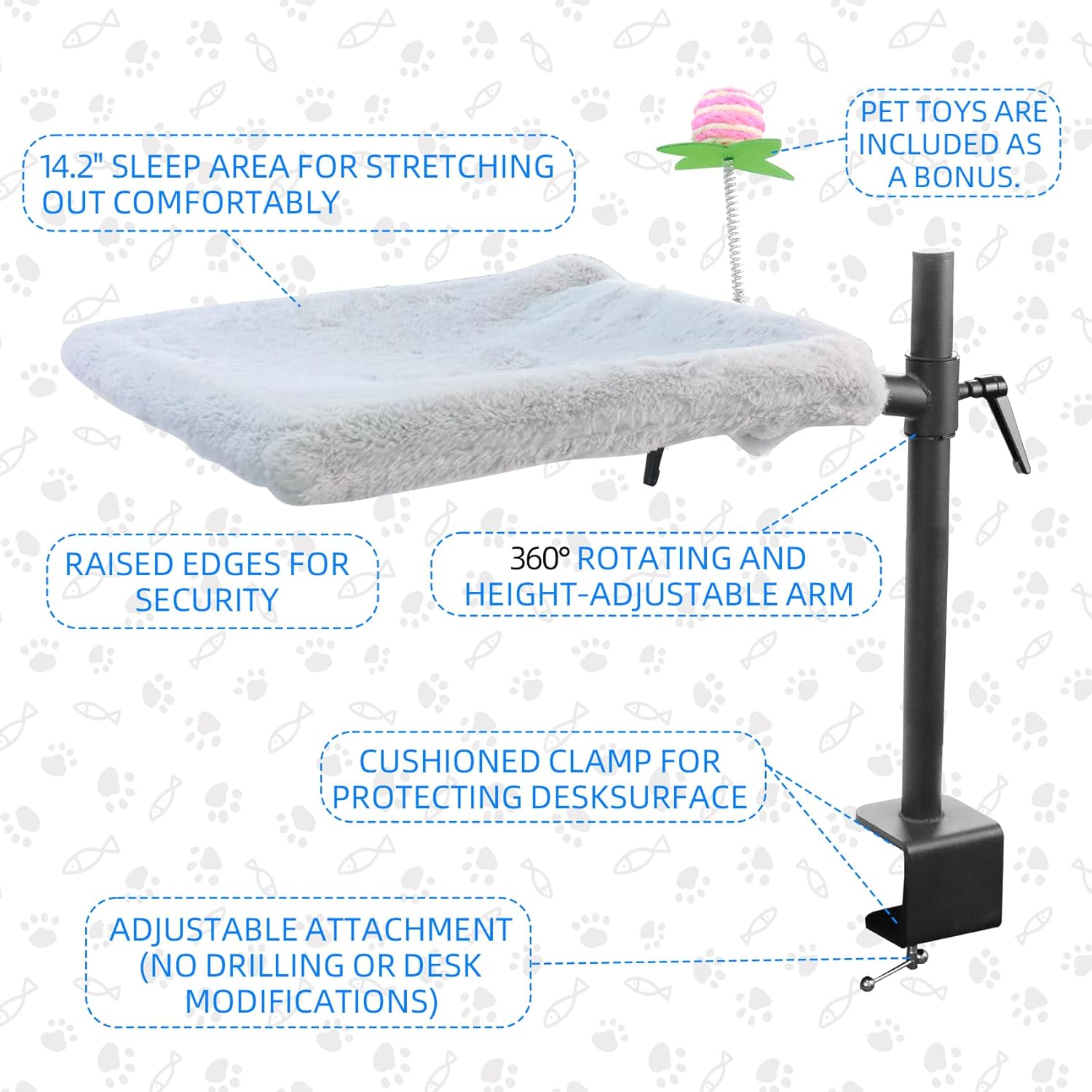 Ahorro de espacio y versátil: se fija de forma segura a escritorios, mesas de juego o islas de cocina, transformando cualquier espacio de trabajo en un entorno amigable con los gatos con esta cama para gatos para escritorio.