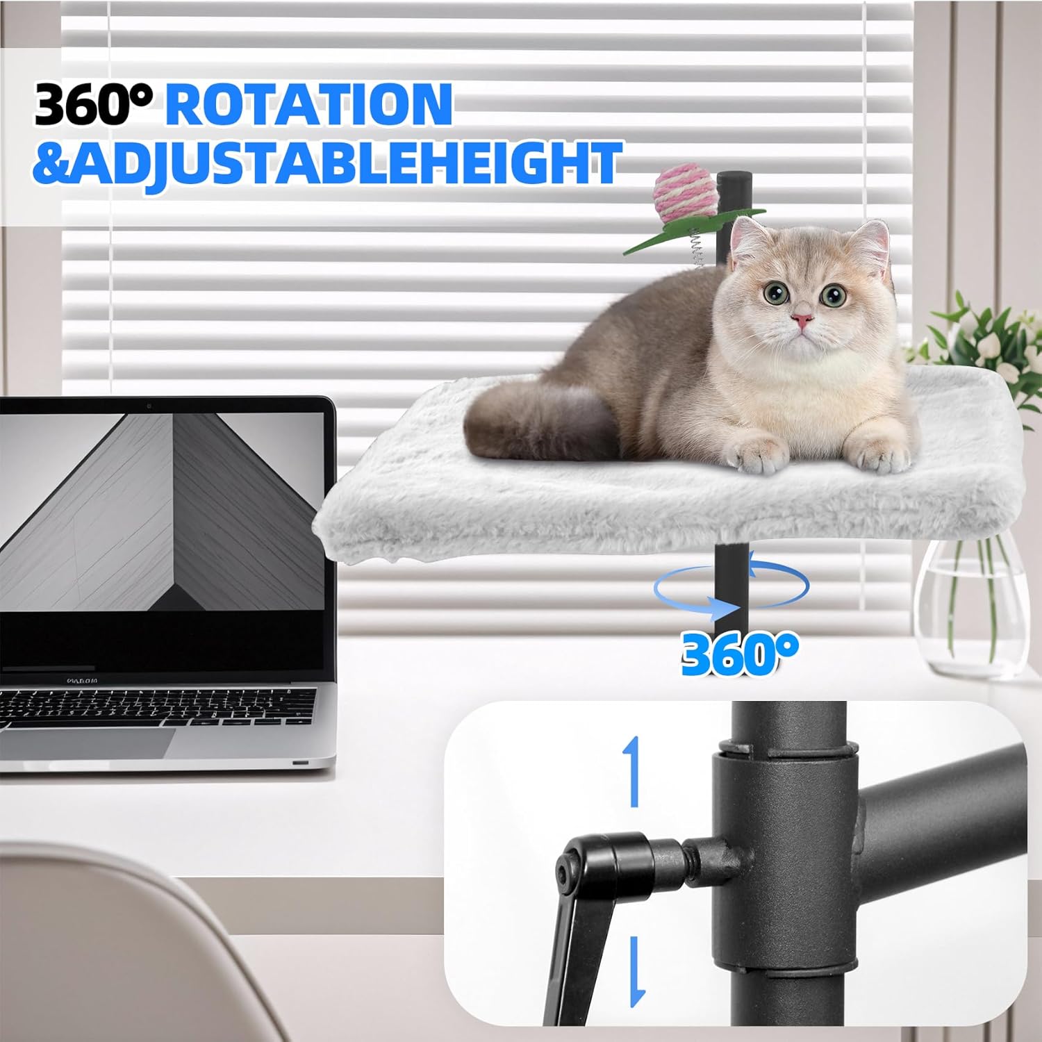 Cama de Escritorio para Gatos con Rotación de 360° y Ajustable Soporte Hasta 19 Kg
