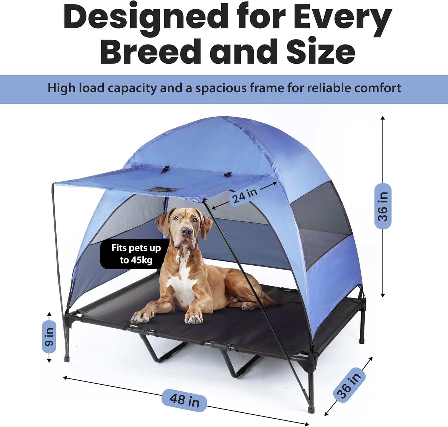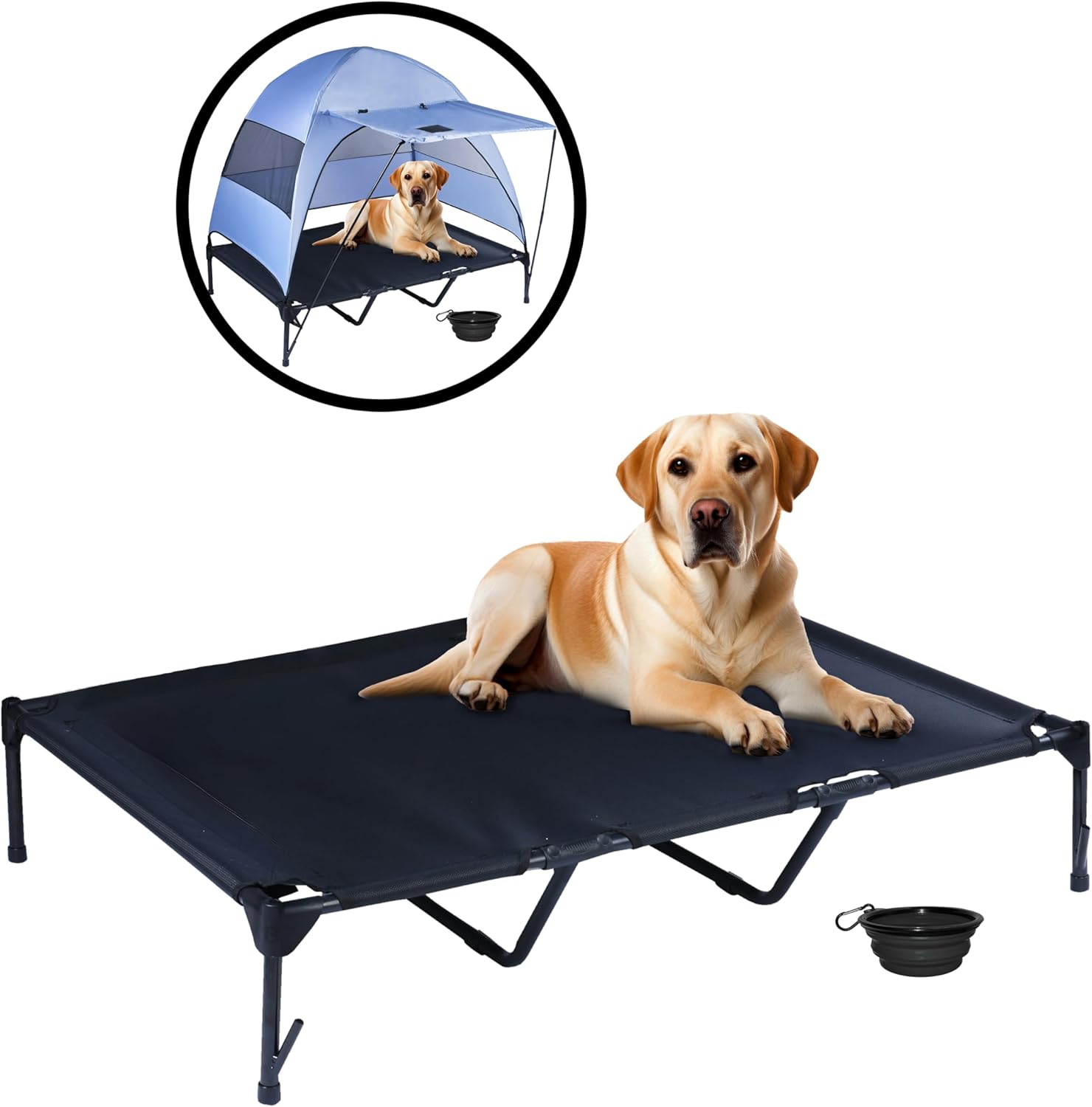 Cama Elevada con Toldo Fijo y Retráctil para Perros 120x90x114 Cm